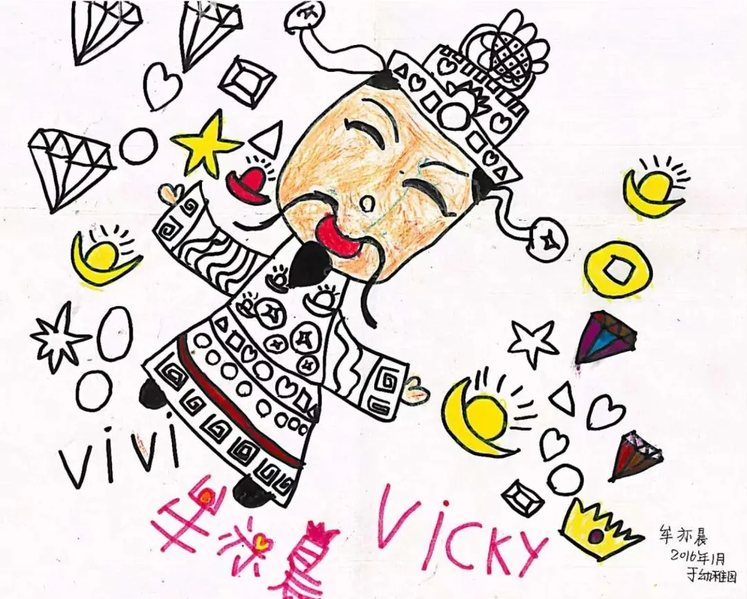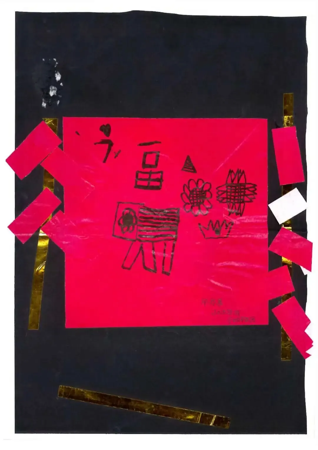 附:2015年1月的新年,4岁多的我在幼稚园时画的福字;