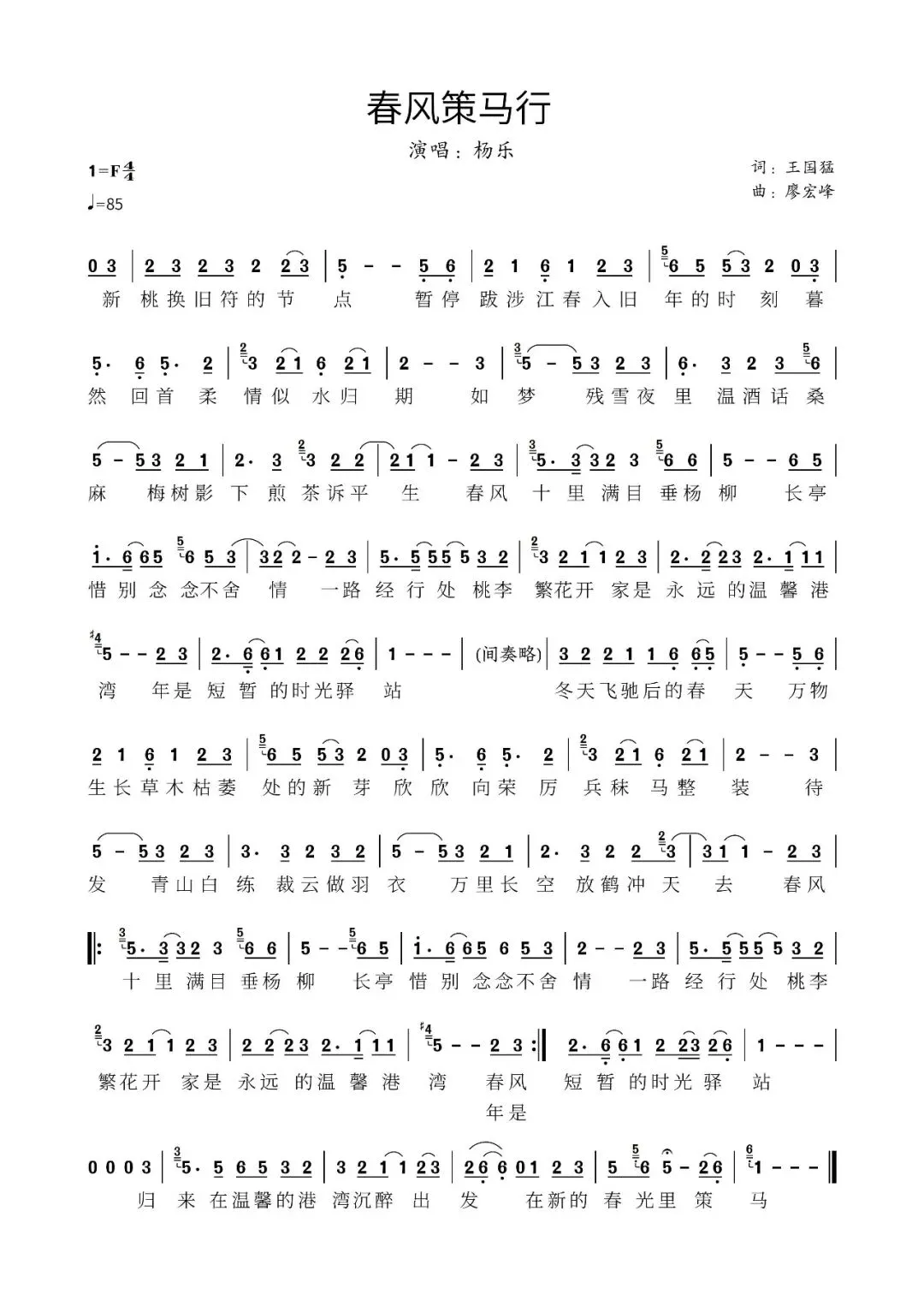 作词:王国猛 作曲:廖宏峰 演唱:杨乐 音乐监制:赵久峰