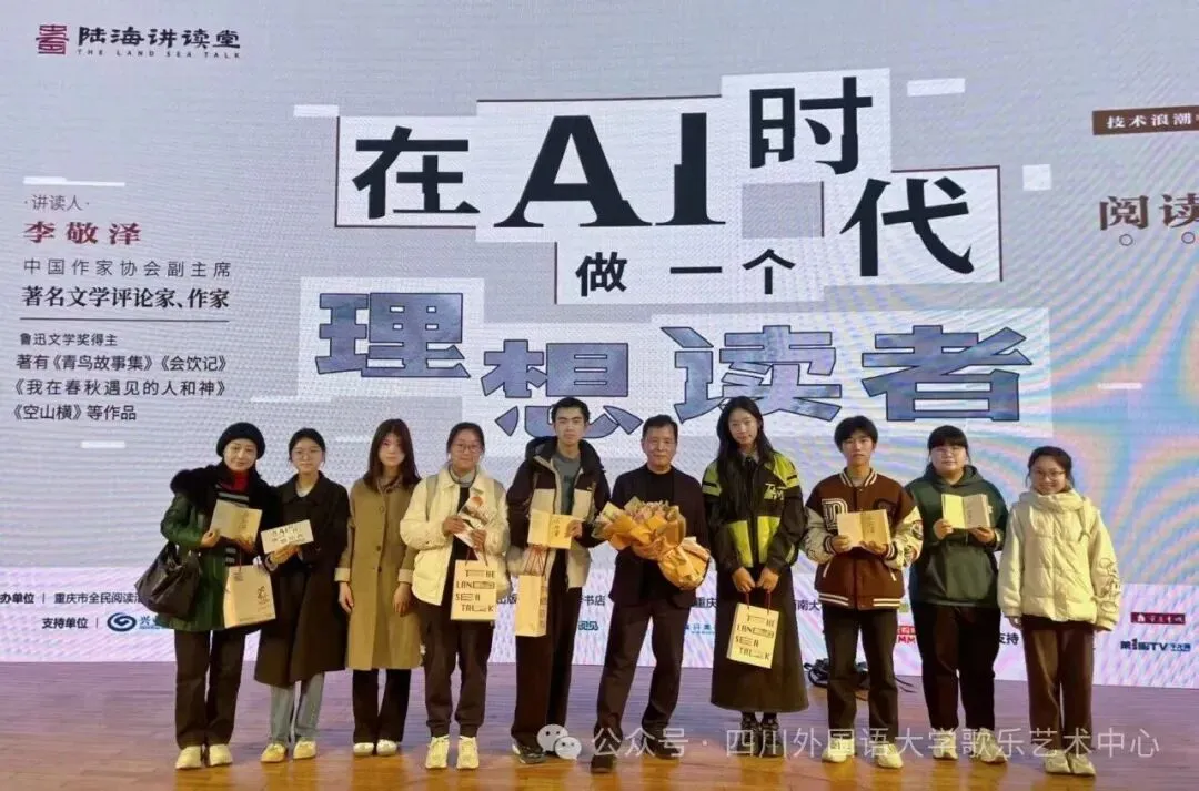歌乐艺术中心师生抵达重庆市人民大礼堂,深度参与中国作家协会副主席、著名文学评论家、作家李敬泽第四期“在AI时代做一个理想读者”的“陆海讲读堂”。