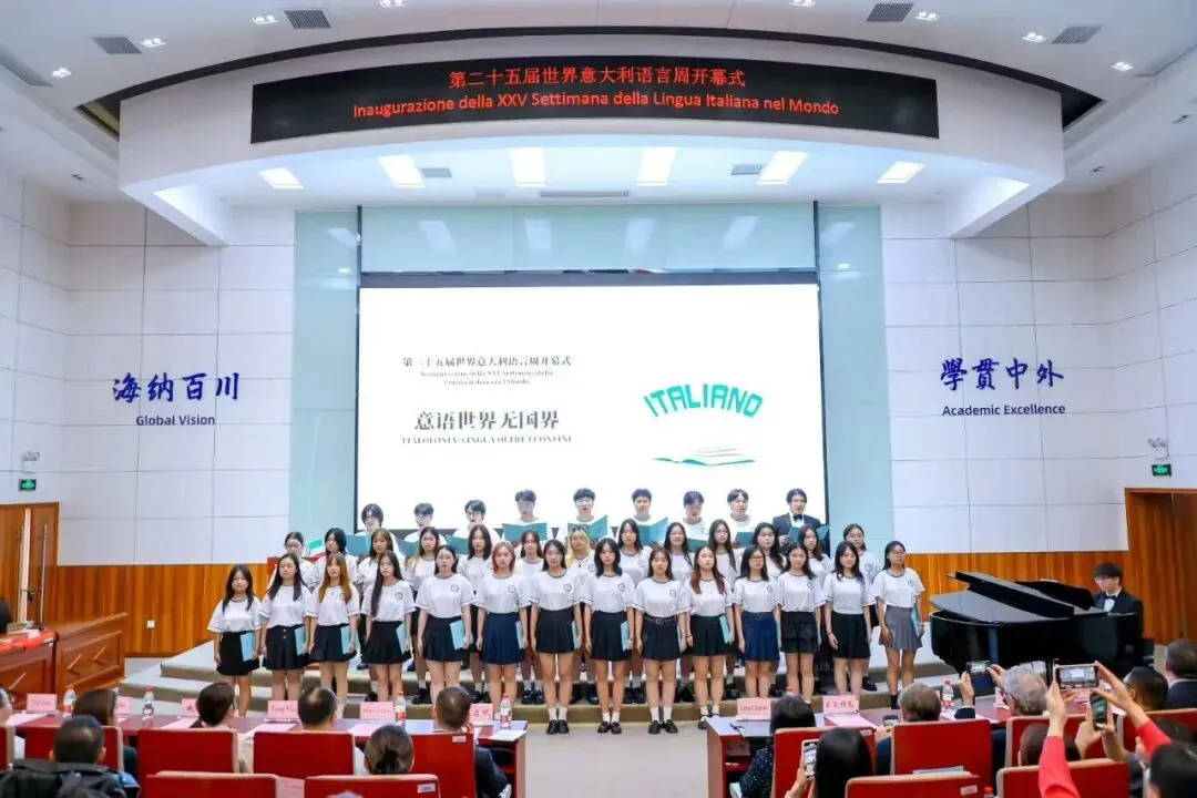 歌乐艺术中心师生参加第25届世界意大利语周开幕式,演唱意大利语歌曲《桑塔露琪亚》。