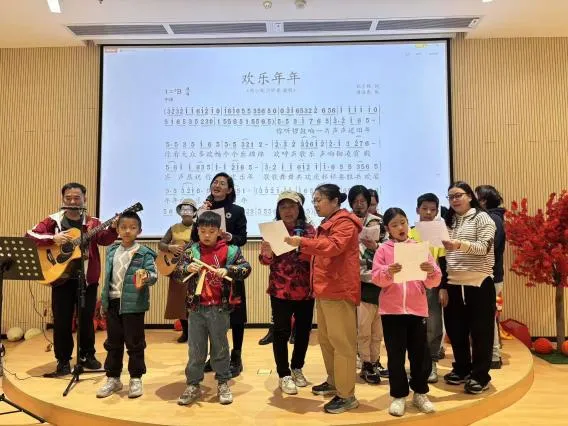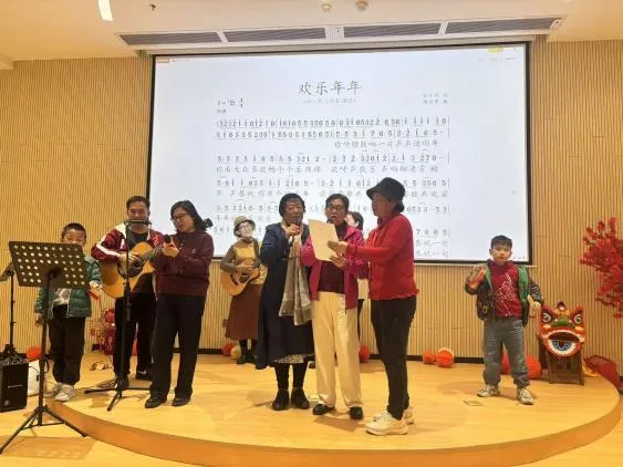 活动现场,最令人感动的是参与者年龄的跨越——从天真烂漫的孩童到精神矍铄的长者,还有充满活力的青年人,三代同堂共唱新春的景象格外温馨。他们在课程中也展示了自己的才艺:小提琴、吉他独唱、快板、非洲鼓......