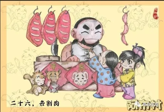 二十六儿,对于过去农村的人家来说,是不平等的。许多人家并不割肉,年过得很素气。即使割了也是象征性的。卖的肉也很杂,病猪、死猪、老母猪。那年刚立烟火,就割了几斤母猪肉,煮了一上午还是扎不动。奇了怪了!后来父亲一看就点破了,直羞愧自己年轻没经验。