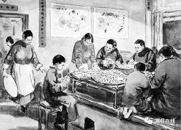 下午包饺子,一家人围在一起,十分高兴。在孩子们的要求下,大人们会包出许多新鲜花样儿来。像猫耳朵啦,小鱼儿啦,花边儿啦,还有的包进几个分钱,叫“吃着有福”! 所谓的“褪猪蹄儿”是戏虐的话儿。过去农村人不讲卫生,入冬洗脚的人就极少了。要过年了,房子也扫了,屋子也整理了,个人卫生总得搞一下吧,于是下午或晚上,烧上一锅水,将黑脏的脚丫子痛洗一番,就算猪蹄儿褪完了,呵呵! 熬年是年三十儿晚上的主题,过去没有电视。半下午吃过晚饭,一家人围在圪塔火前,说着故事,讲着传统,传承着亲情。老人们的故事陈年古代,但很吸引人。跑刀客、跑老日、中央军、八路军、土改、农业社等等等等,惊险刺激,动听。把孩子们说得睡在火盆边儿上、父母怀里。