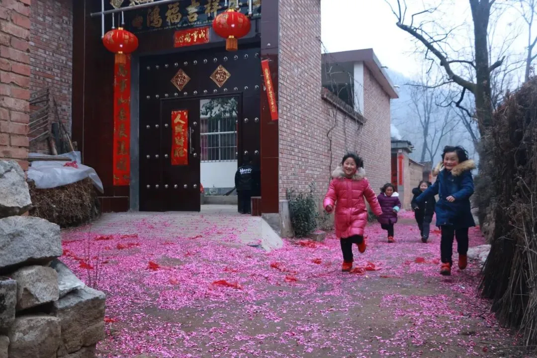 “三声炮辞去旧岁,一挂鞭迎来新春”这副对联虽然直白,但也真实。大五更,不知谁家先是三声炮响,马上引发全村、邻村和一道沟。孩子们一梦醒来,穿上新衣、新鞋,戴上新帽,拉开大门高叫着跑出家门,奔向鞭炮响处。