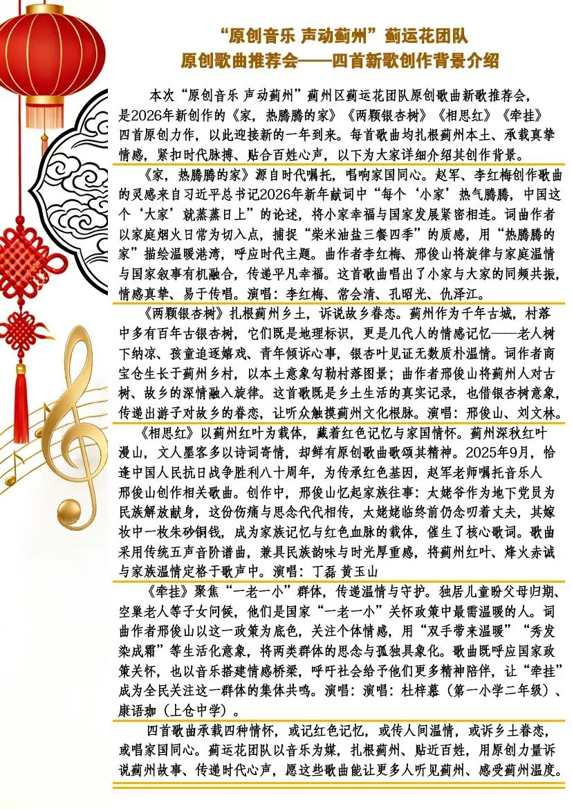蓟运花团队原创歌曲新歌推荐会圆满落幕,是蓟州本土文艺力量的一次集中展示。为你梳理了推荐会的核心看点: