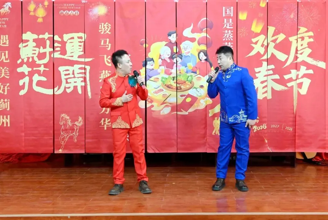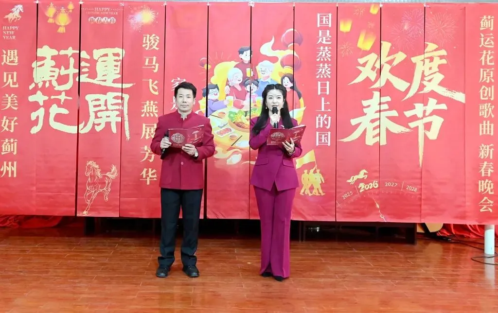 蓟州区蓟运花团队主持人强亚朋、二美在蓟运花团队原创歌曲新歌推荐会上主持 (摄影:张连福)