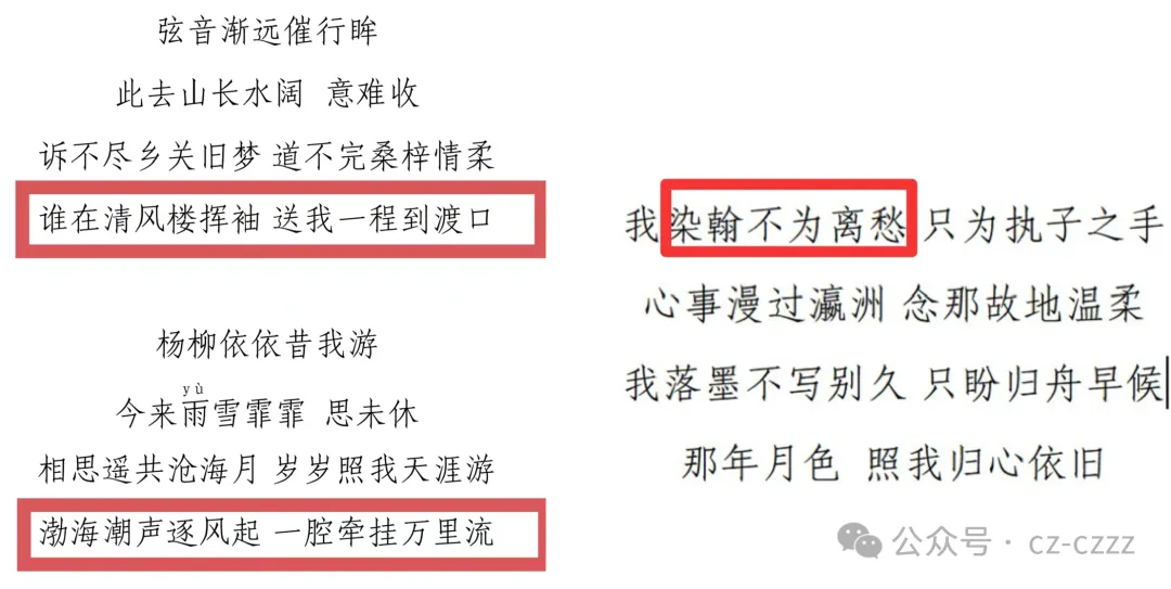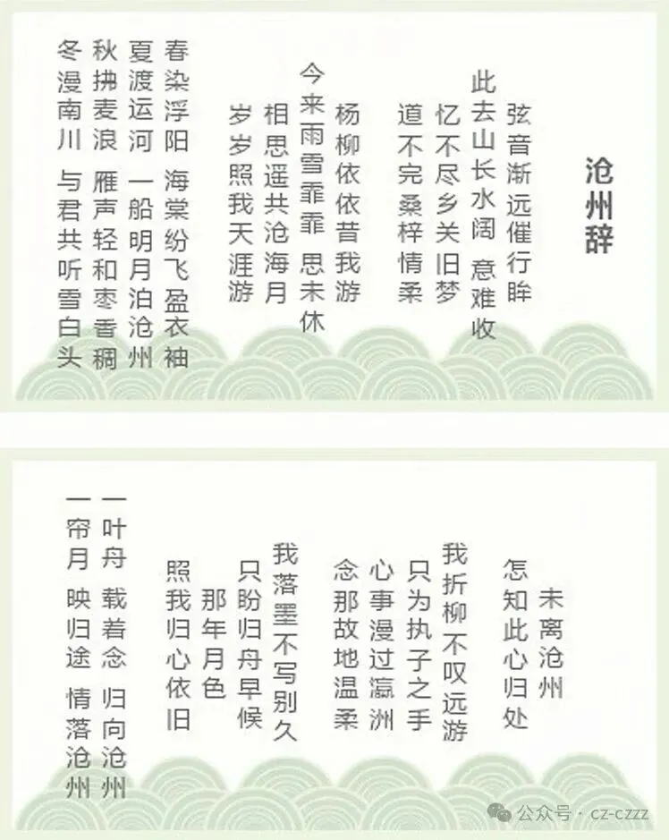 我们依托沧州“诗经文化之乡”千年文脉,化用《诗经・采薇》中“昔我往矣,杨柳依依;今我来思,雨雪霏霏”名句,为这份乡愁赋予深厚的文化底蕴。搭配折柳、归舟、沧海月等经典乡愁意象,让舟为归舟、月为乡月、念为乡念,所有意象皆汇聚于“沧州”二字,让游子的所有思念与期许皆落向归乡的终点,既让词中情感有了归宿,也为游子归心指明了方向。