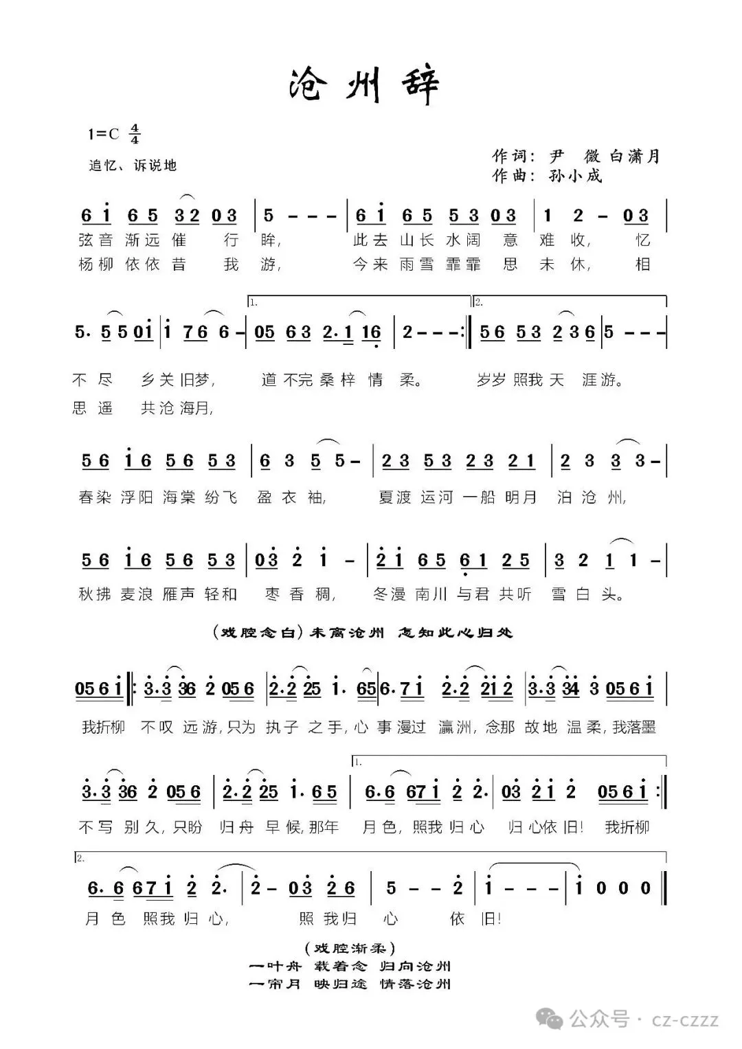 尾声与前奏相呼应,但在配器上做出了变化,使得歌曲意蕴悠长、荡气回肠,牵引着听者一同循着旋律,归向沧州、情落沧州。