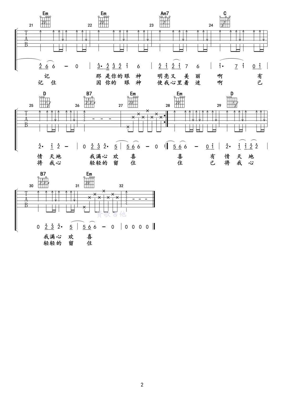 今天为大家分享一首华语乐坛的传世经典——《你的眼神》高清吉他谱。
