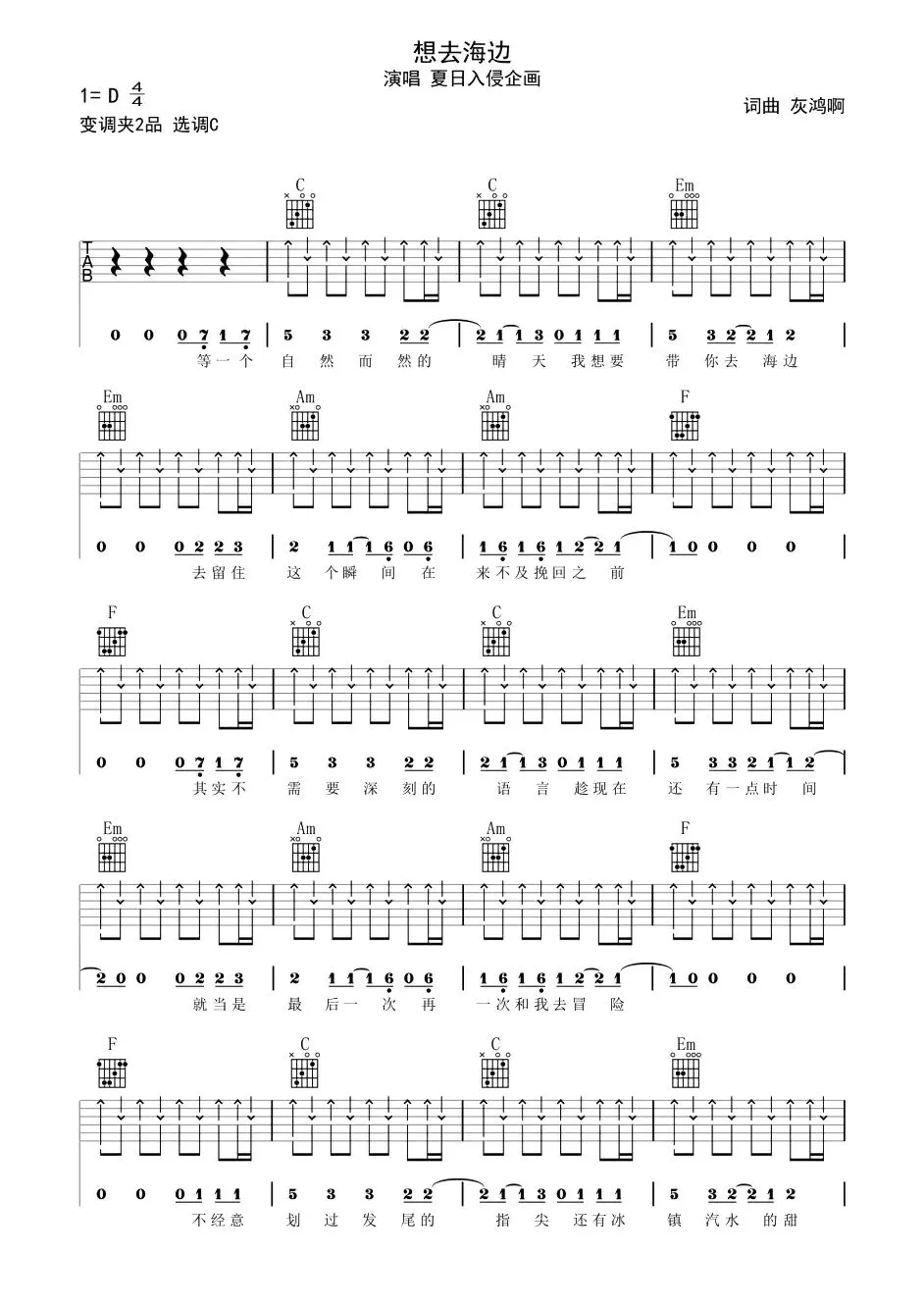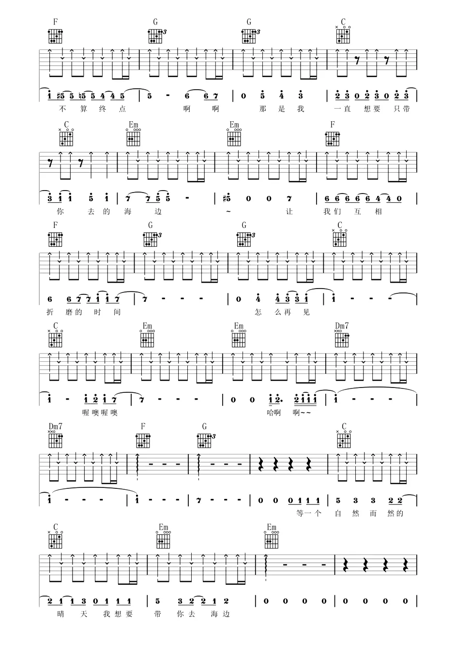 夏日入侵企画《想去海边》歌曲简谱
