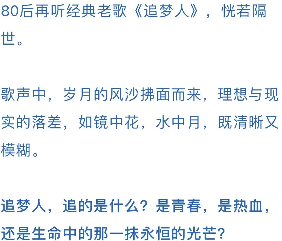 80后再听《追梦人》,歌声依旧动听,但心中的滋味已不同。