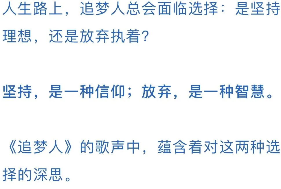 如今再听《追梦人》,歌声中透着一丝凉意,仿佛在说:理想与现实,不过是一面镜子的两面。