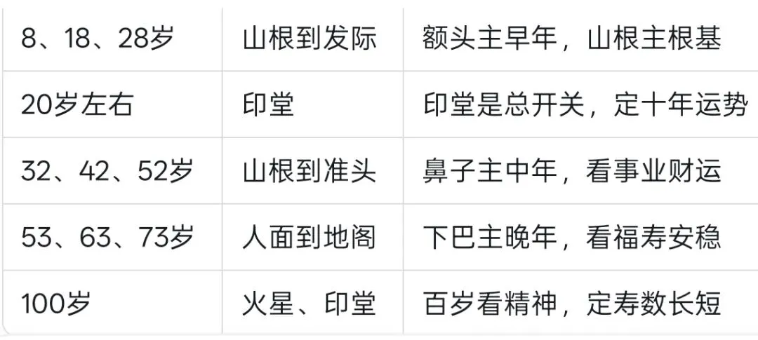 为什么?因为这个区域覆盖了额头和山根,而额头主早年运势,山根主青年根基。这三个年龄段,正是人生的重要转折点: