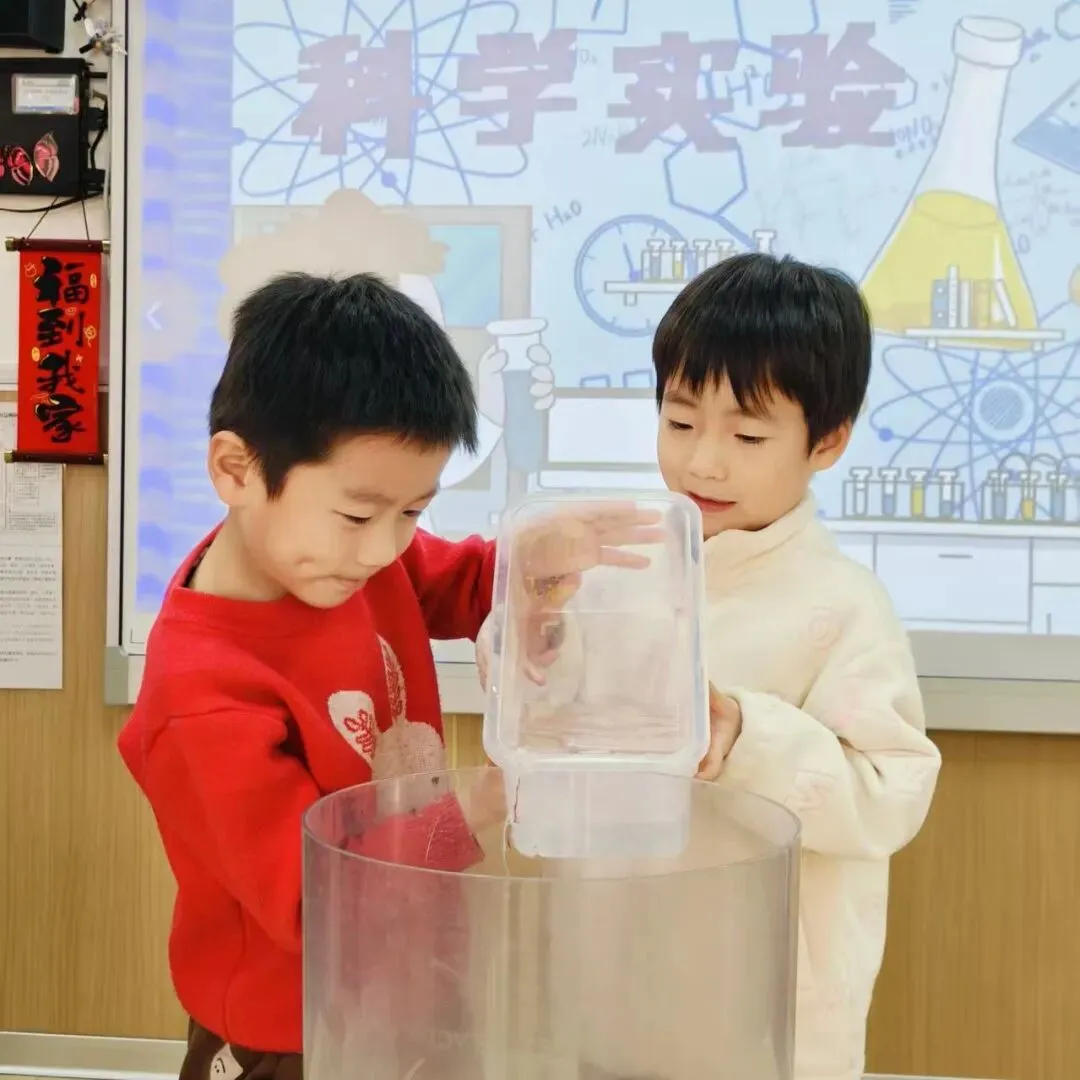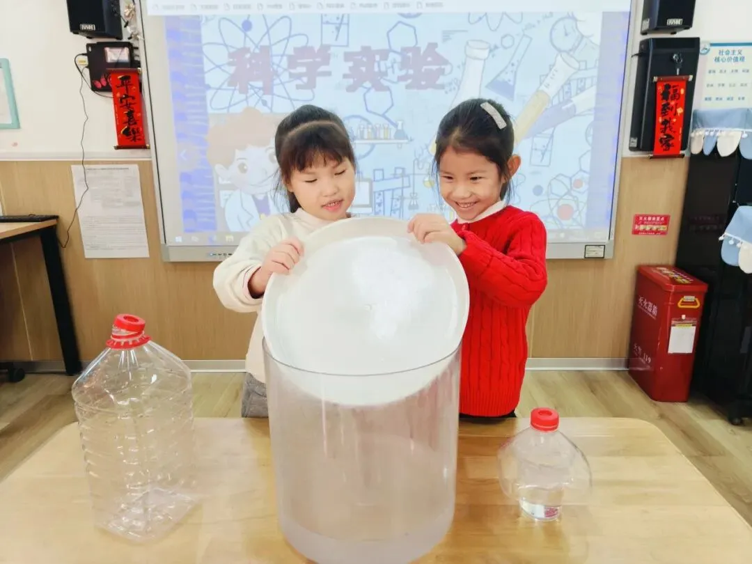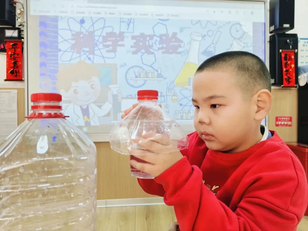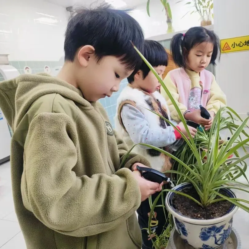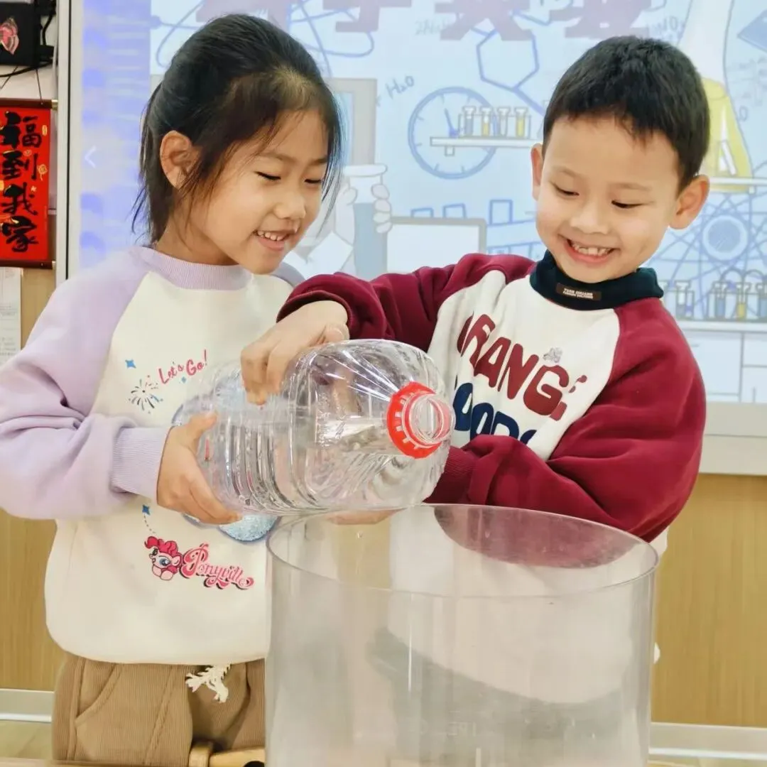 孩子们以童真之眼,静观水汽化珠、珠落如雨,在这微小的美好里,感知四季韵律,探寻科学乐趣。