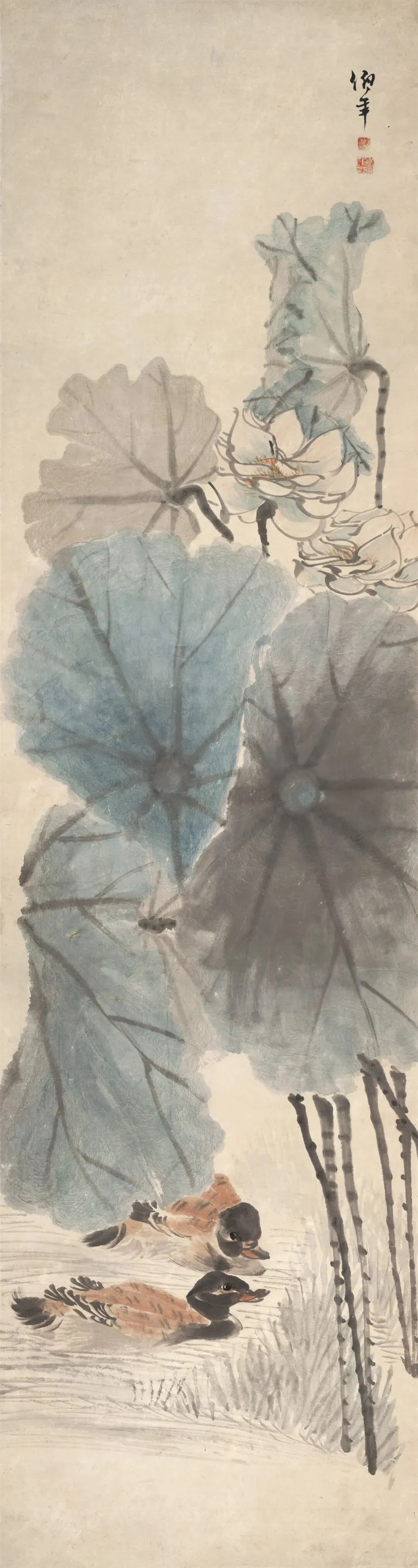清 任伯年《荷花鸳鸯图》