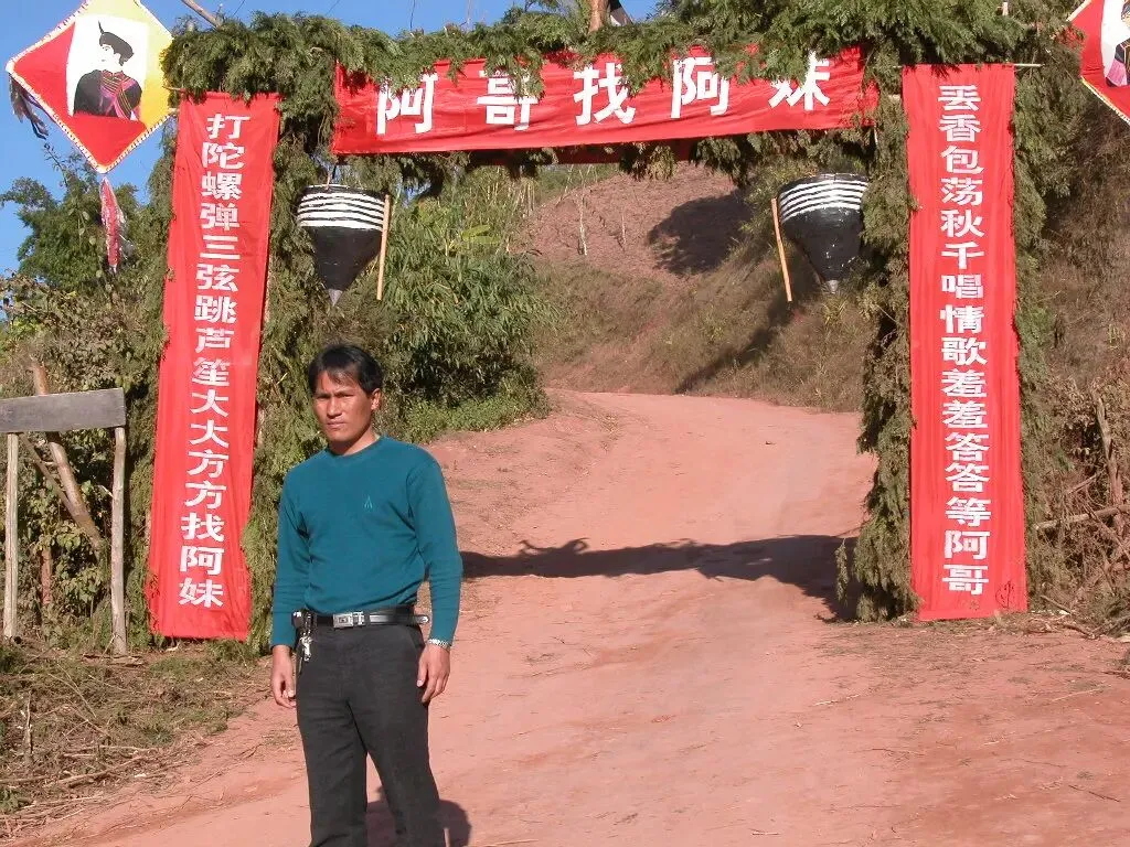 大概在2002年春节前,时任国庆乡书记岳宝书和乡长李松找我要求帮国庆乡丢包场撰写两幅对联,于是我写下了入门的对联:打陀螺弹三弦跳芦笙大大方方找阿妹,丢香包荡秋千唱情歌羞羞答答等阿哥。横幅为:阿妹找阿哥。工作人员制作时却写成了阿哥找阿妹,女人主动的情人节变成了女人被动的节庆。