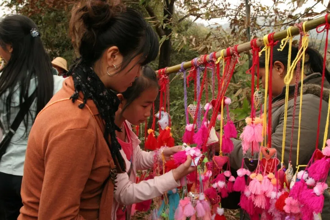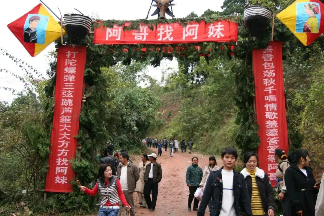 今天,丢包找情人节的事变成了男女老少全民共同参与的一项轰轰烈烈的节日活动,丢包场里也就云集了卖牛烂烀、酸苔、茶水、果点等各种商品的商贩,犹如集市无所不有。你谈你的爱情,我看我的风景,他卖他的商品,各不干扰又互为包容,或浪漫或现实。