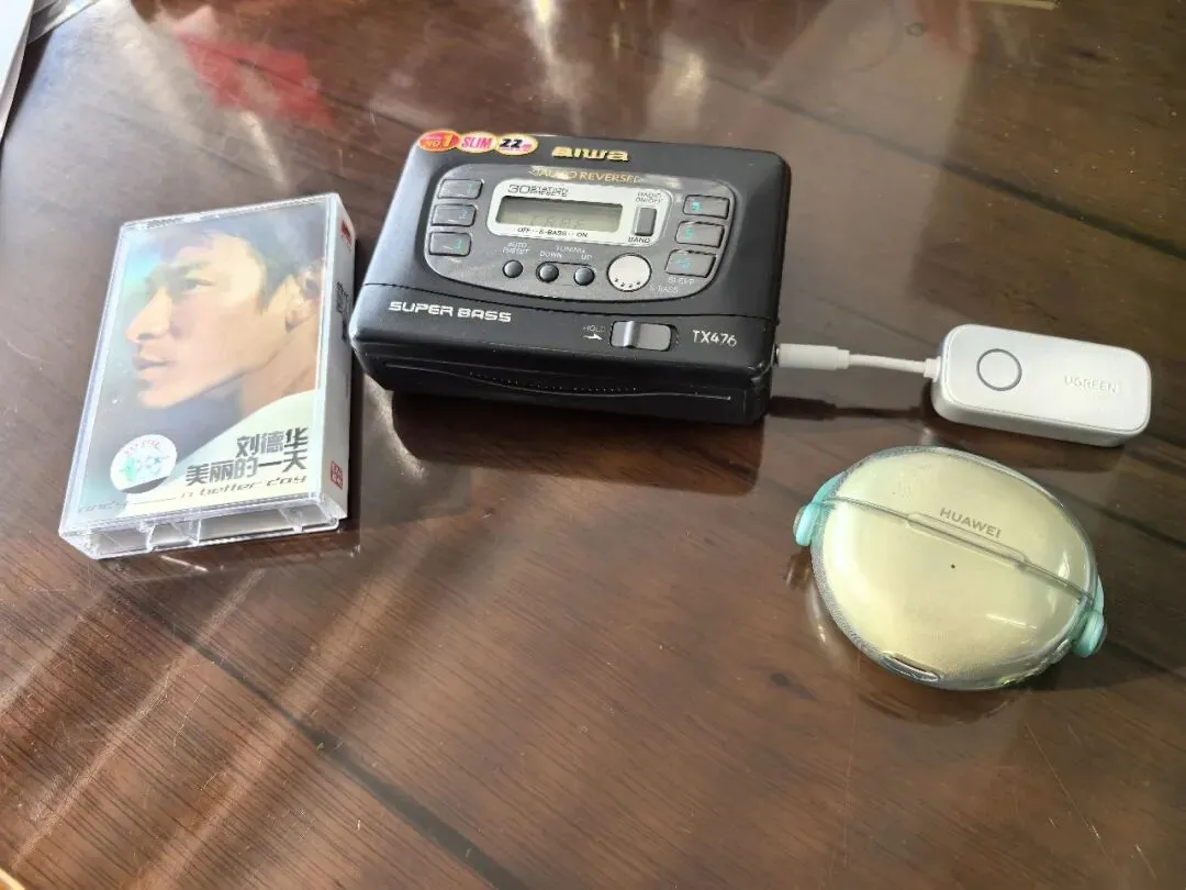 接下来便是难熬的等待,相信大家肯定都能体会购买心爱之物后等待快递到来时的那种焦急的心情。真是千呼万唤始出来,先后收到蓝牙接收器和2盘磁带后,我便迫不及待地进行了首次测试——将蓝牙发射器插入随身听、设置️与华为耳机连接、将磁带装入随身听,一气呵成。