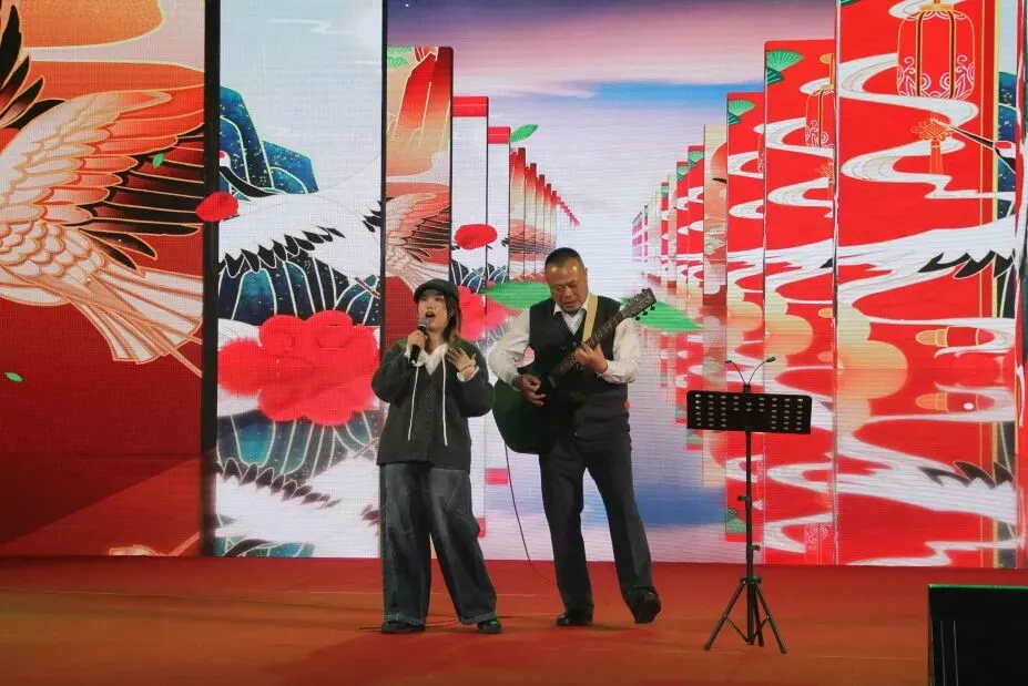 晚会现场,有歌声、有欢笑,老中青三代同台献艺,歌声里流淌着时光记忆,舞步中跃动着青春活力。