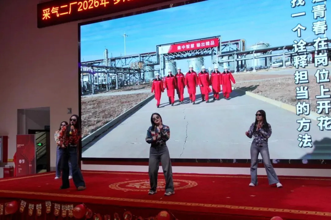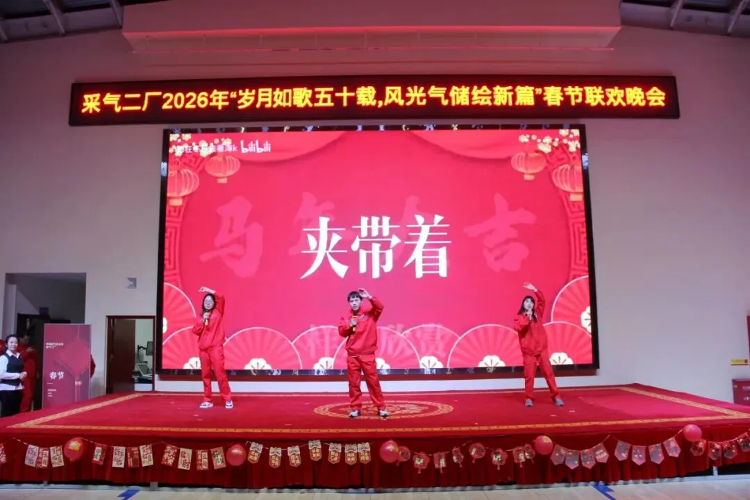 在2026年农历马年春节来临之际,采气二厂干部员工欢聚一堂,在咸阳和杭锦旗基地,用两场热气腾腾的春节联欢晚会,共同回望五十载奋斗荣光,点燃新一年的奋进激情。