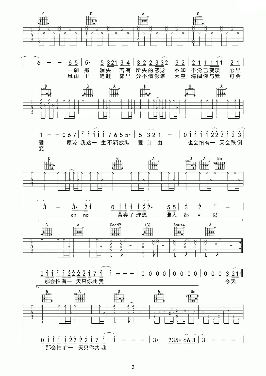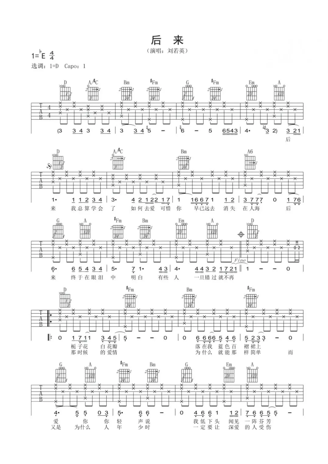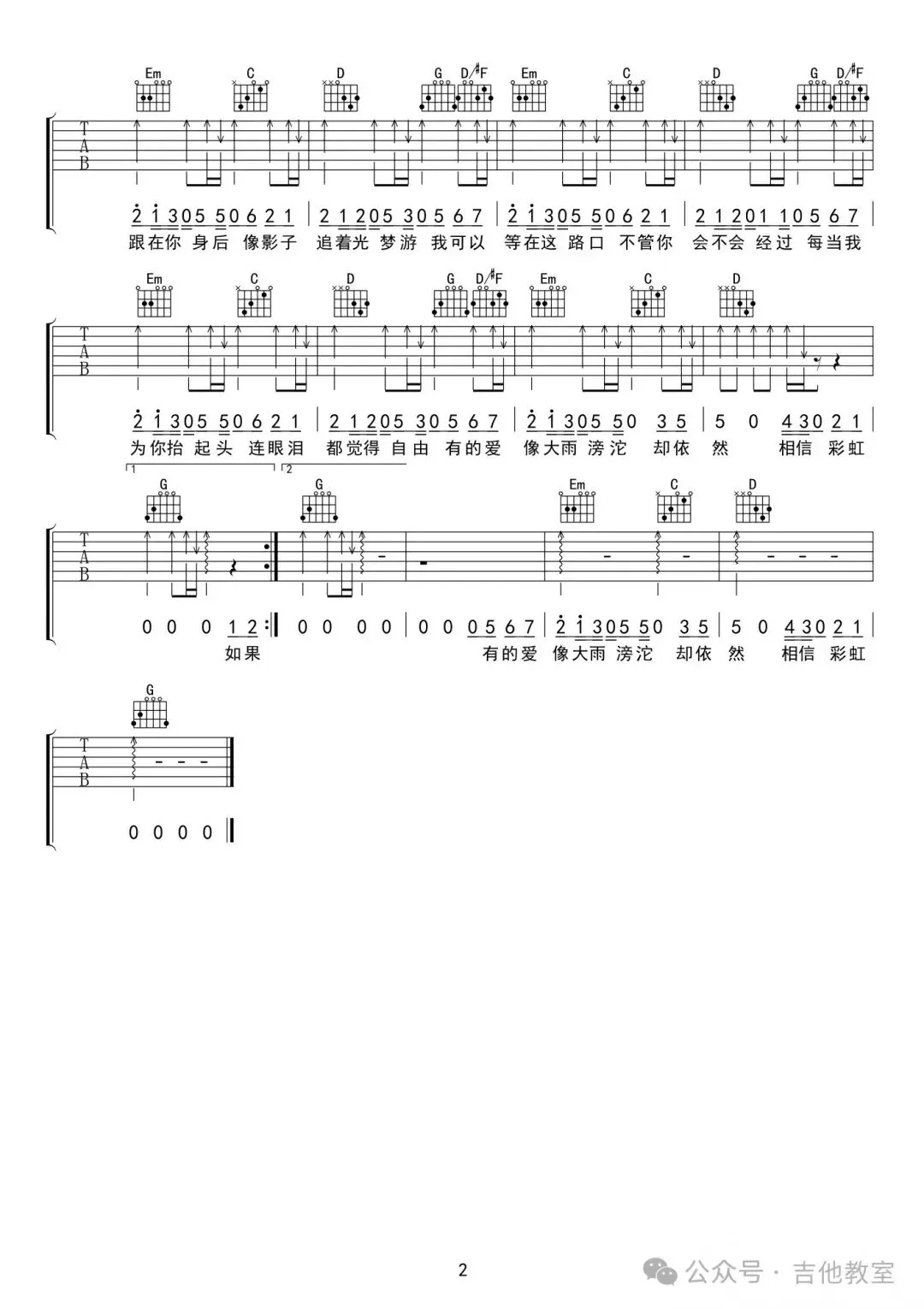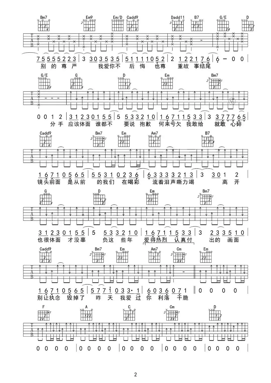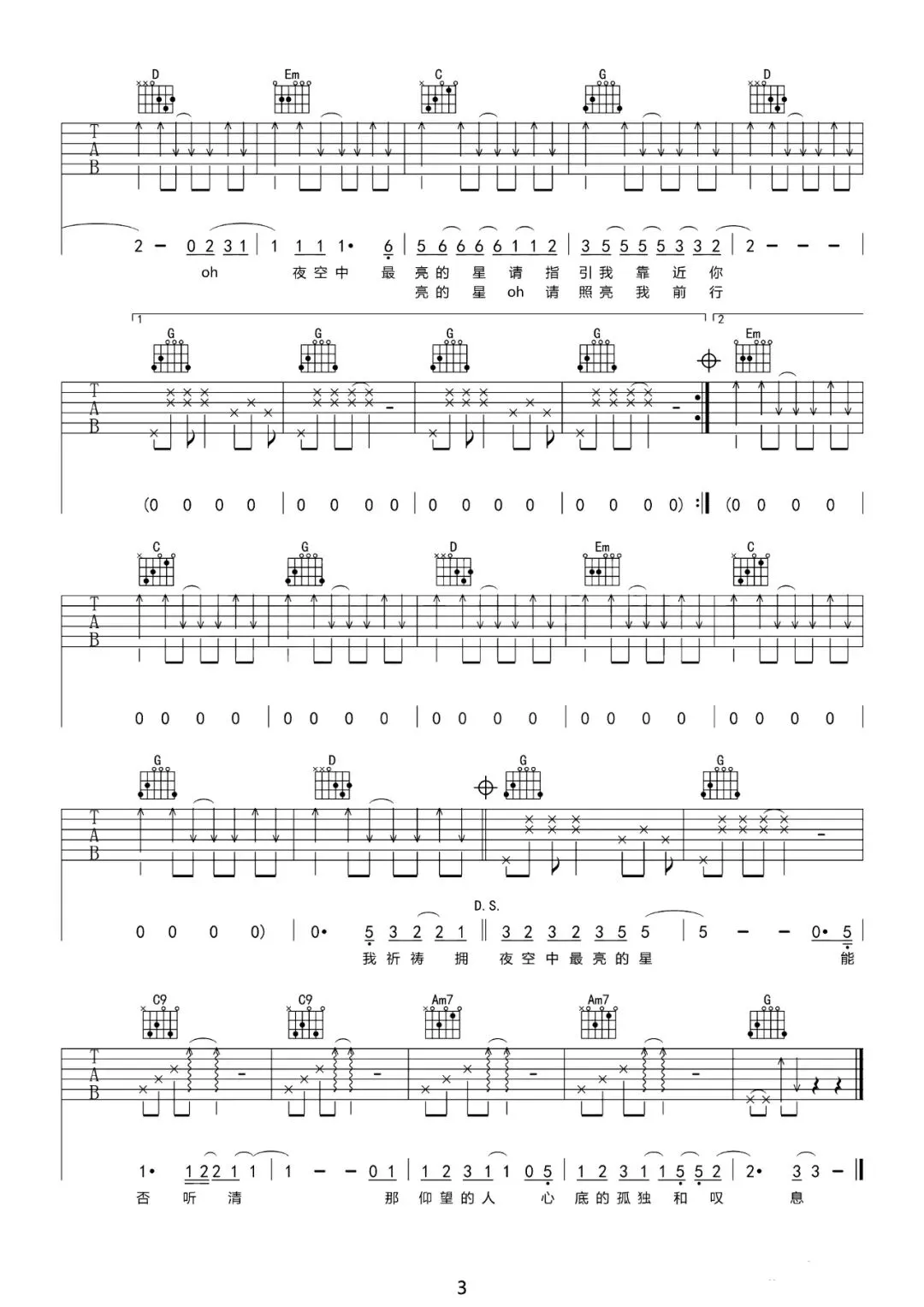 叙事型歌曲,前奏用双音伴奏增加层次。主歌部分采用"刷-扣-刷"的节奏型,副歌改用强力和弦扫弦。注意扫弦力度控制,情绪起伏全在右手动态。