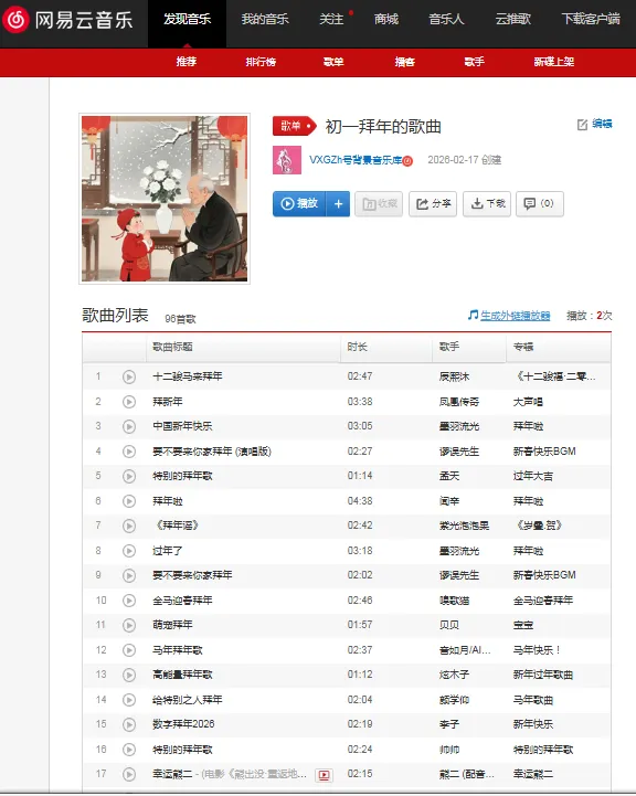 歌单:初一拜年的歌曲