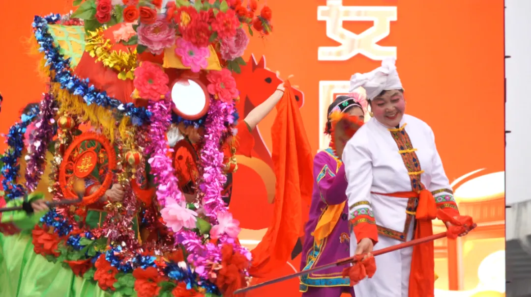 歌伴舞《母亲是中华》过后,花鼓戏《秦巴欢歌过大年》如期亮相。演员们踩着轻快的步子,地道的安康花鼓戏唱腔婉转悠扬,既有传统韵味,又融入了新年的喜庆元素,引得台下老人跟着哼唱。压轴的非遗表演《彩船送福闹新春》,更是把活动推向了高潮。“花鼓戏是咱安康的老宝贝,传了这么多年,不能丢。”刚走下舞台的花鼓戏演唱者,安康市首批乡土能人李甲斌难掩兴奋,他表示,“以前唱的多是老戏文,现在我们结合当下情境编了新故事,就是想让这门老手艺在新时代里,唱出不一样的新调子。”