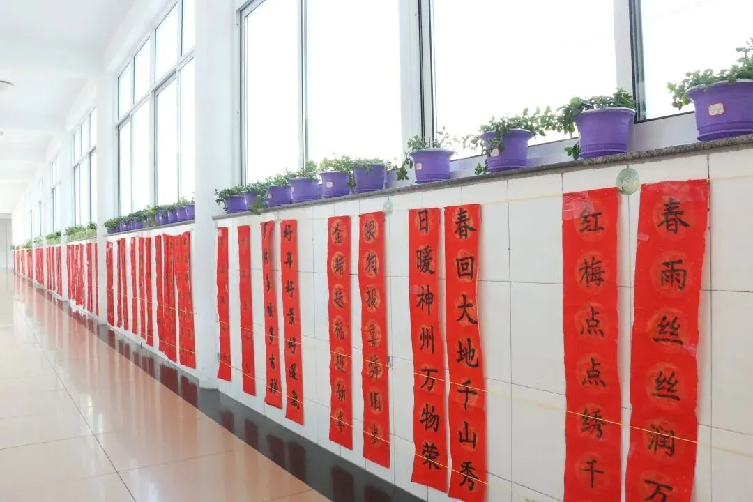 孩子们对中华文化的学习和探索还不止于此,学校里有吟诵社、书法课……孩子们一有时间就会一起读书、背诗,学校的走廊上也贴满了孩子们自己写的对联。