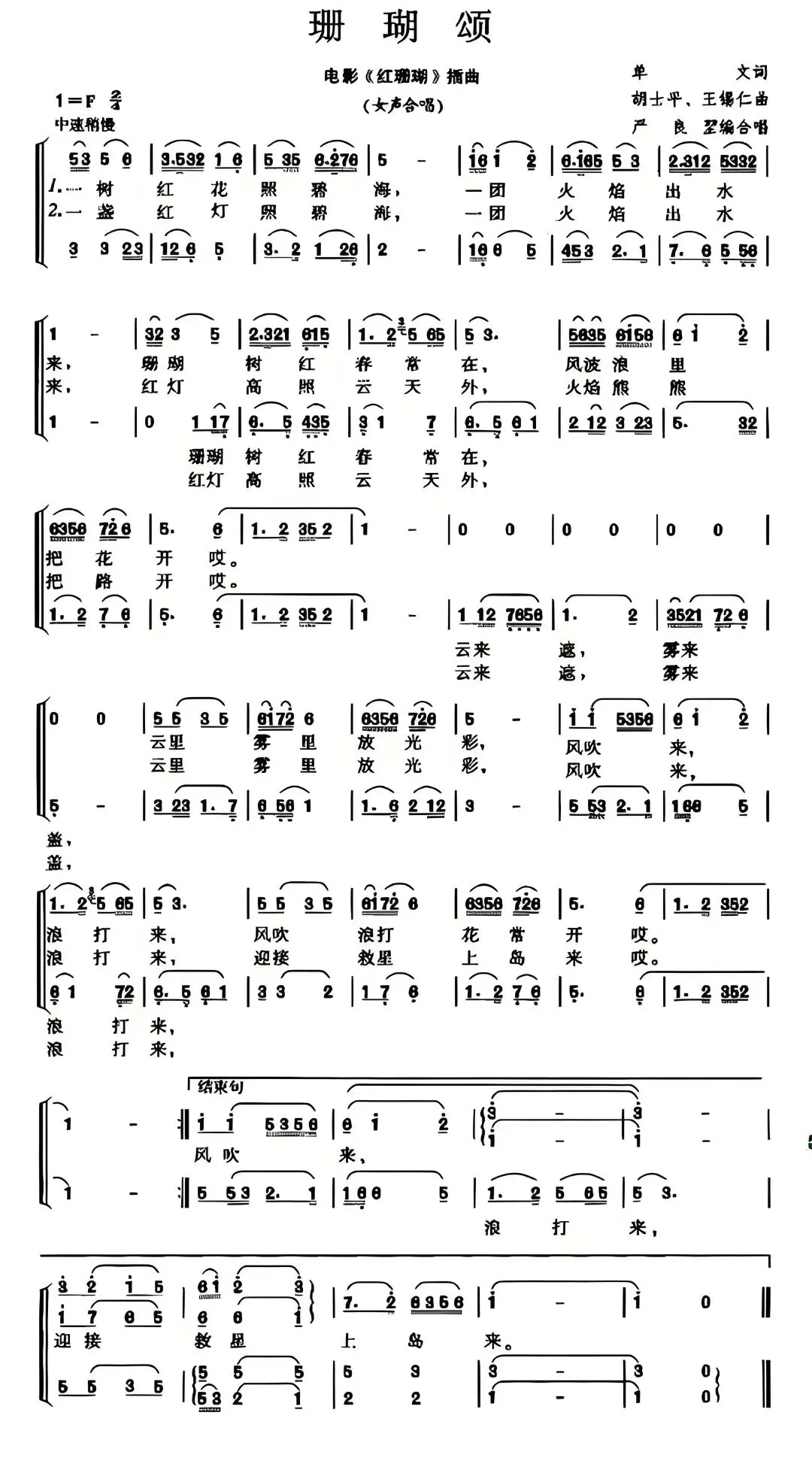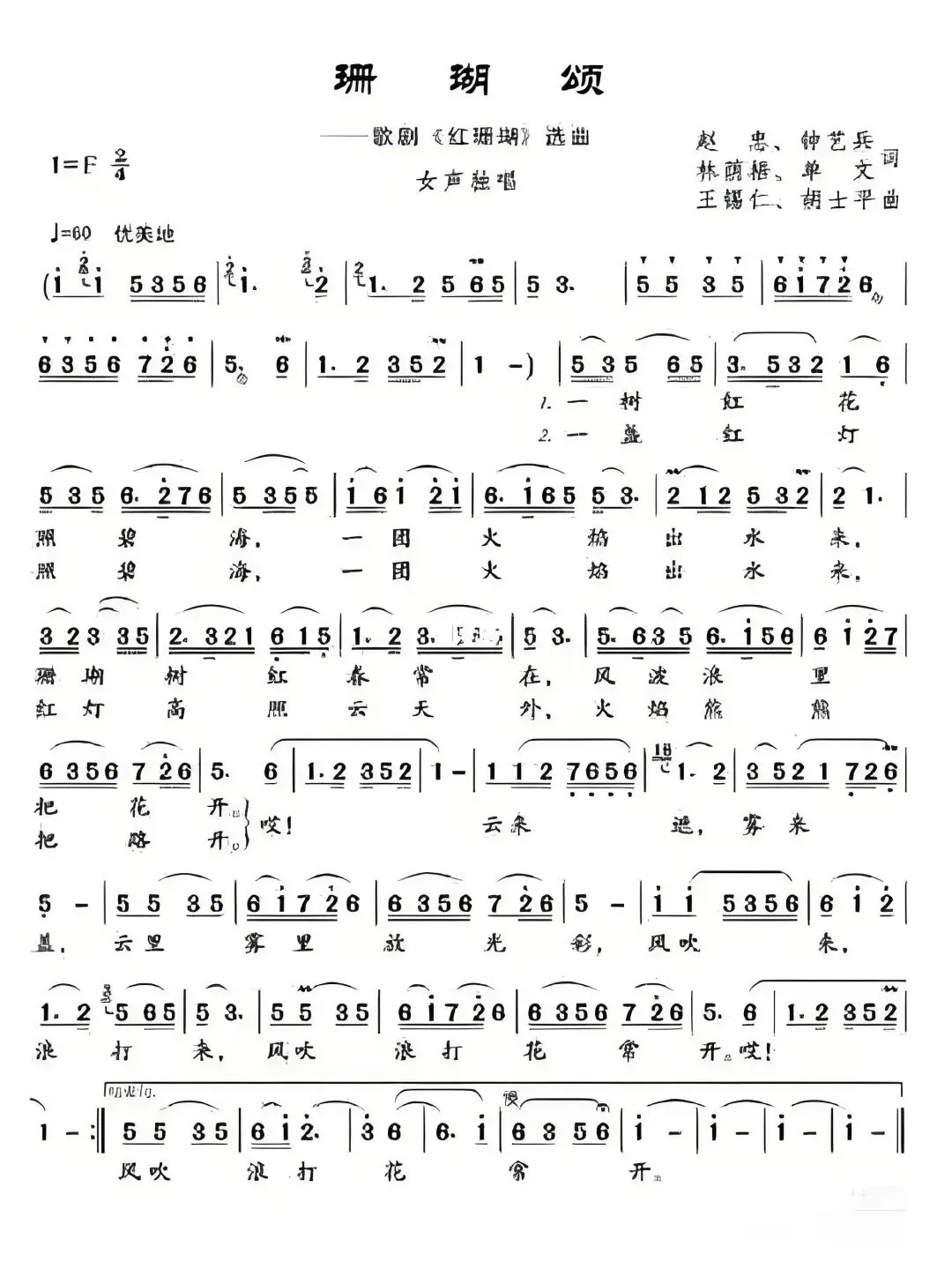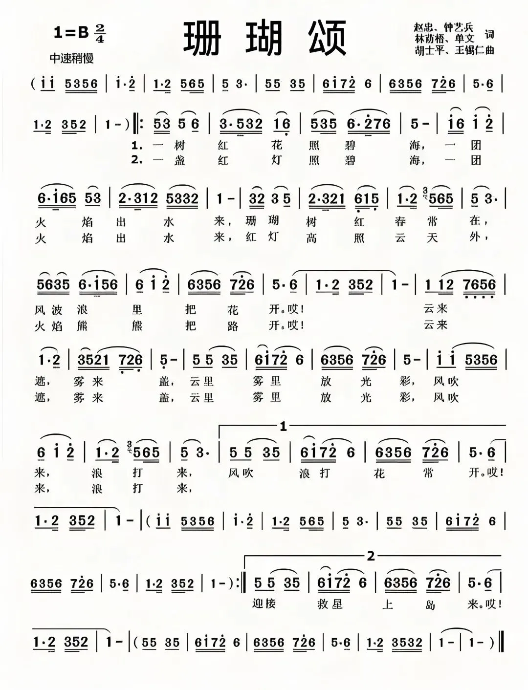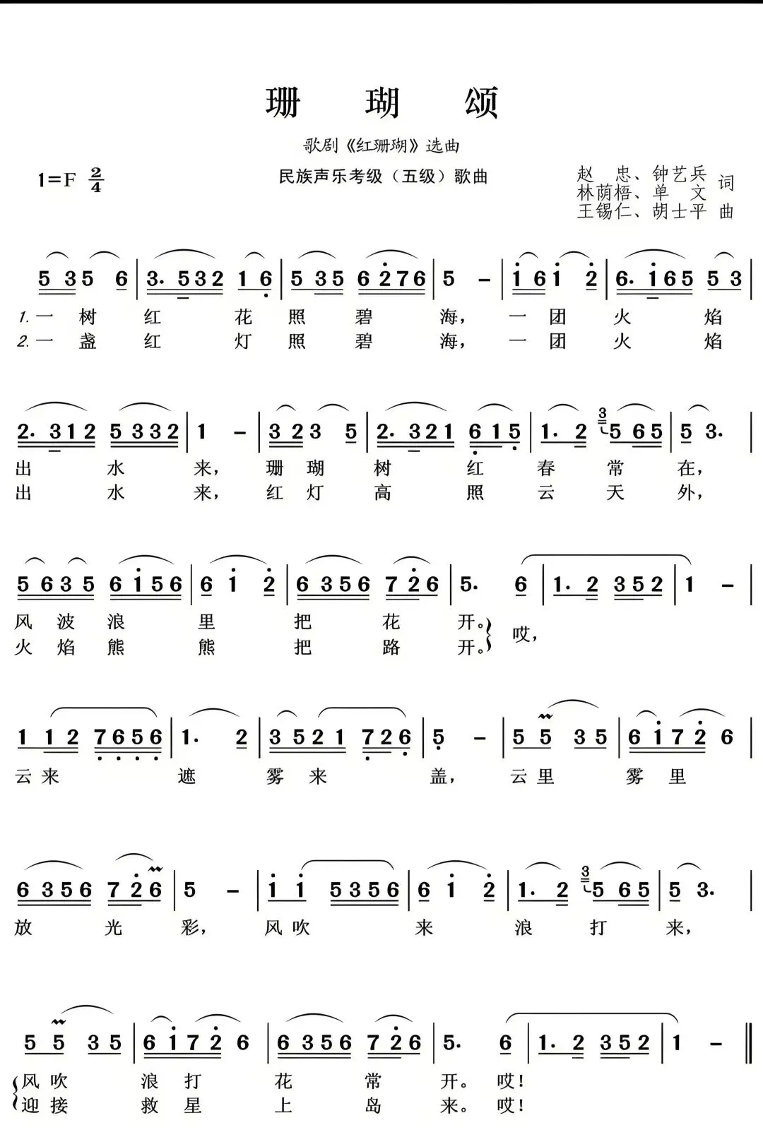 - 歌曲名:珊瑚颂(又名红灯颂)