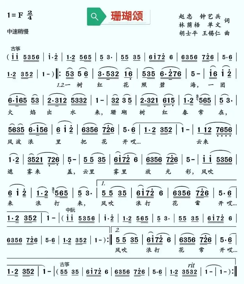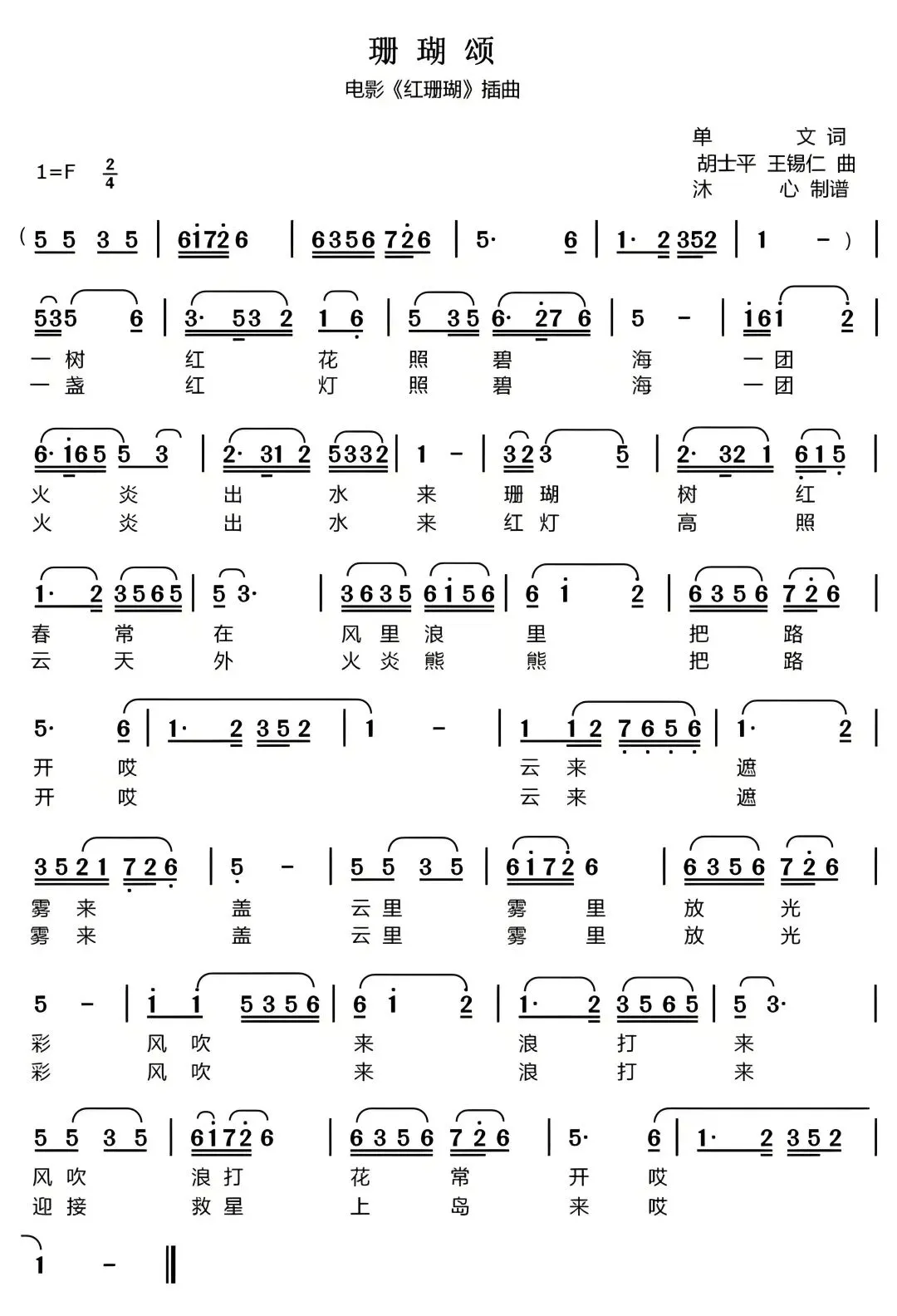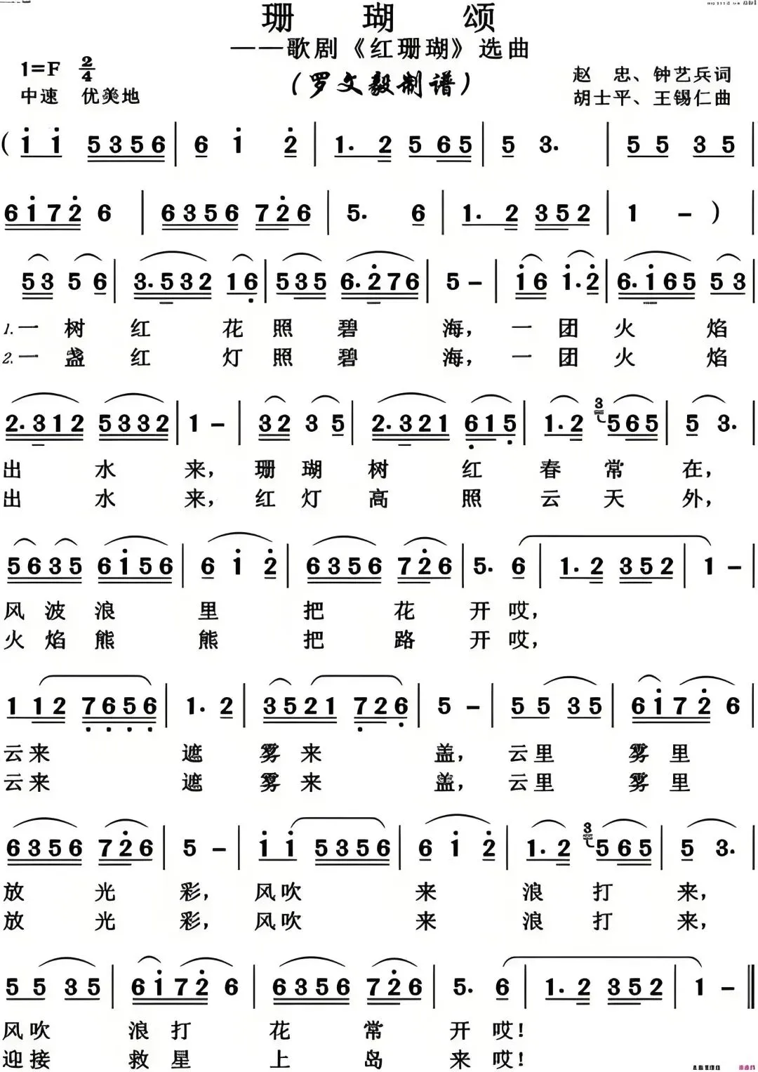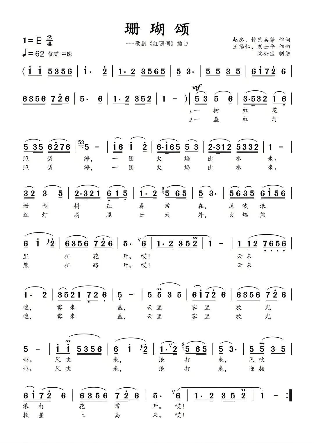 - 歌曲名:珊瑚颂(又名红灯颂)
