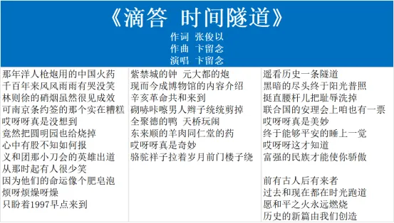 在找这首歌的作词者时,我看到了一篇1998年的文章,评论人点名批评这首歌。“比如张俊以创作的歌曲《时光隧道》,居然把中国的百年痛史装进了莲花落加‘RAP’的说唱形式……这是‘将屠夫的凶残化为一笑’(鲁迅),把沉重的历史变为油腔滑调……这样的词曲,是在歌颂站起来了的人民的形象,还是在勾画扶不起来的愚民的嘴脸?”[1]。以现在时代观念来看,1998年的这个评价有些古板了。持诚则明