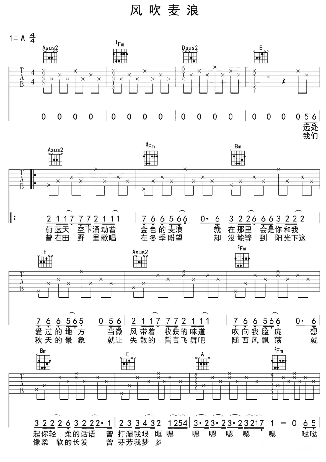 风吹麦浪吉他谱