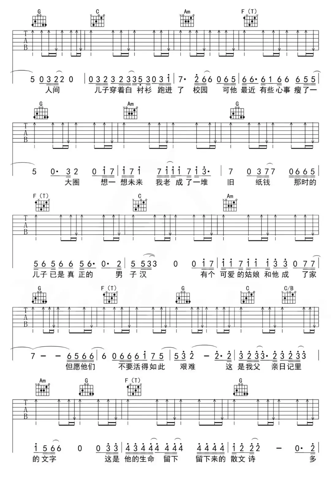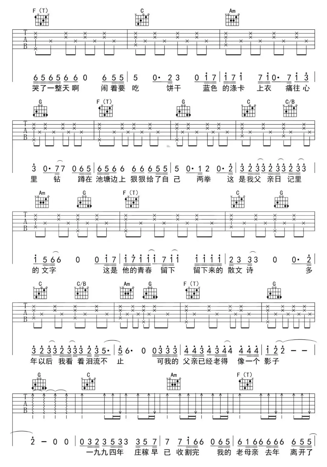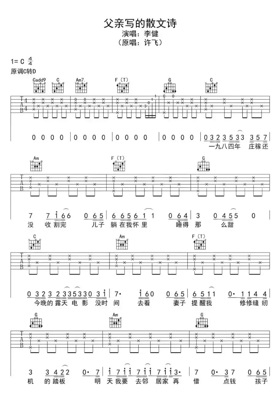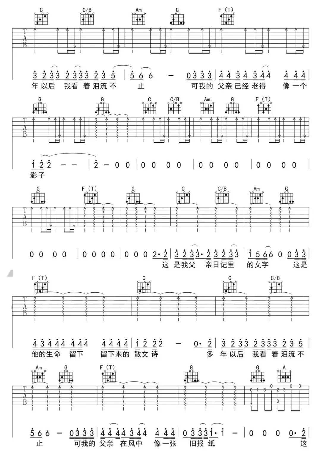 父亲写的散文诗吉他谱