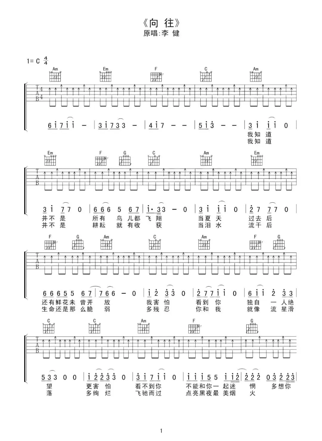 向往吉他谱