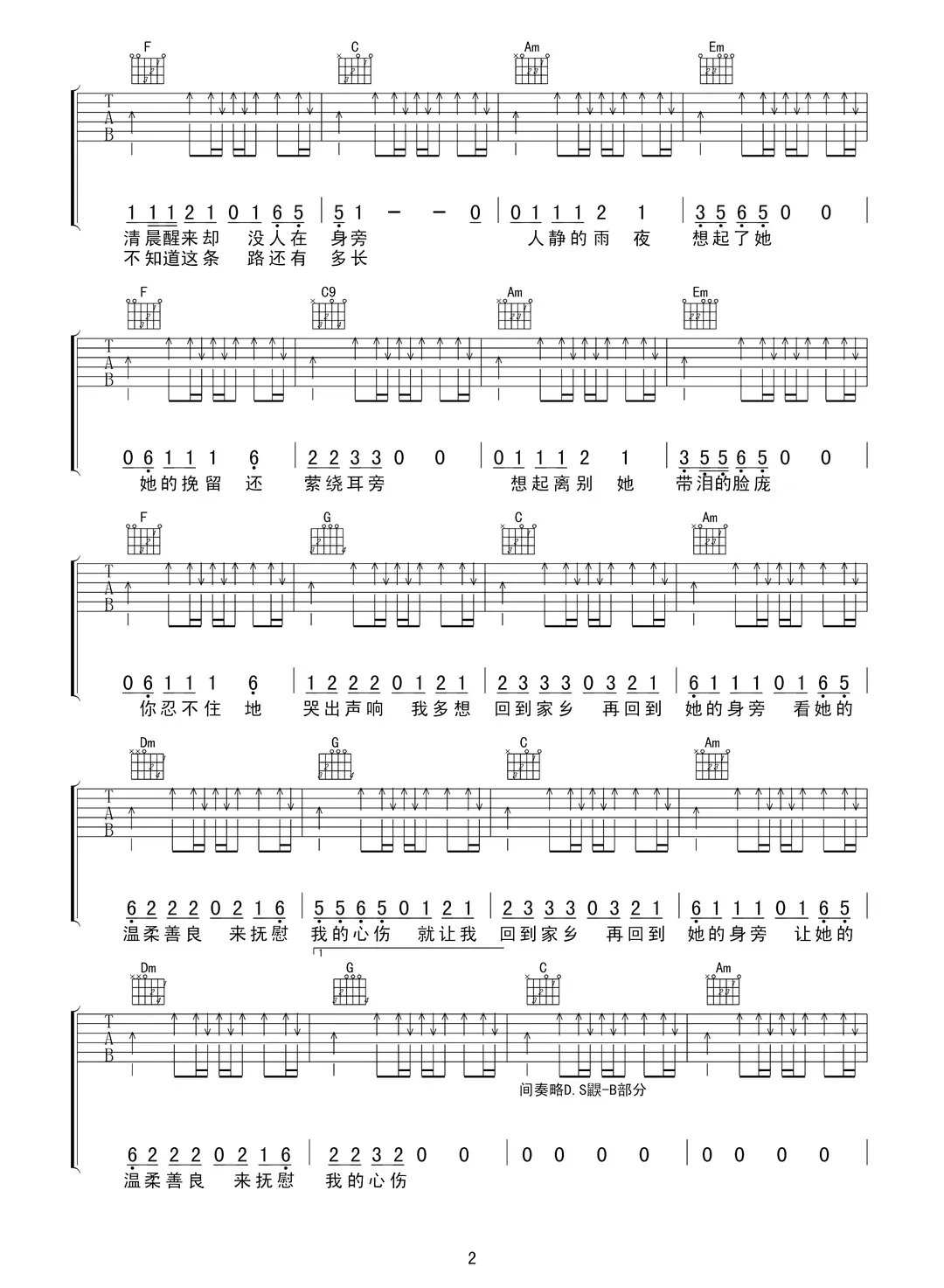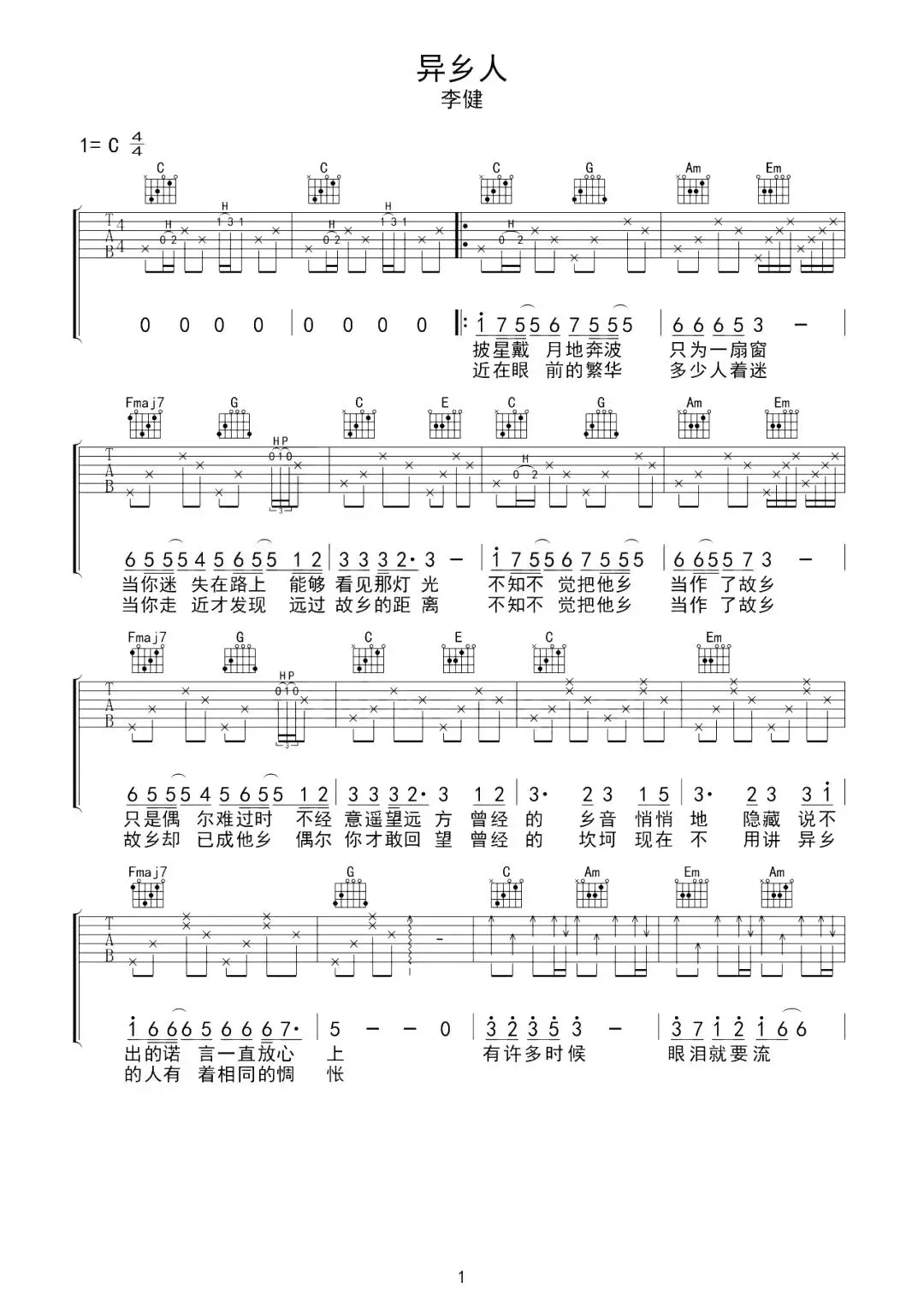 异乡人吉他谱