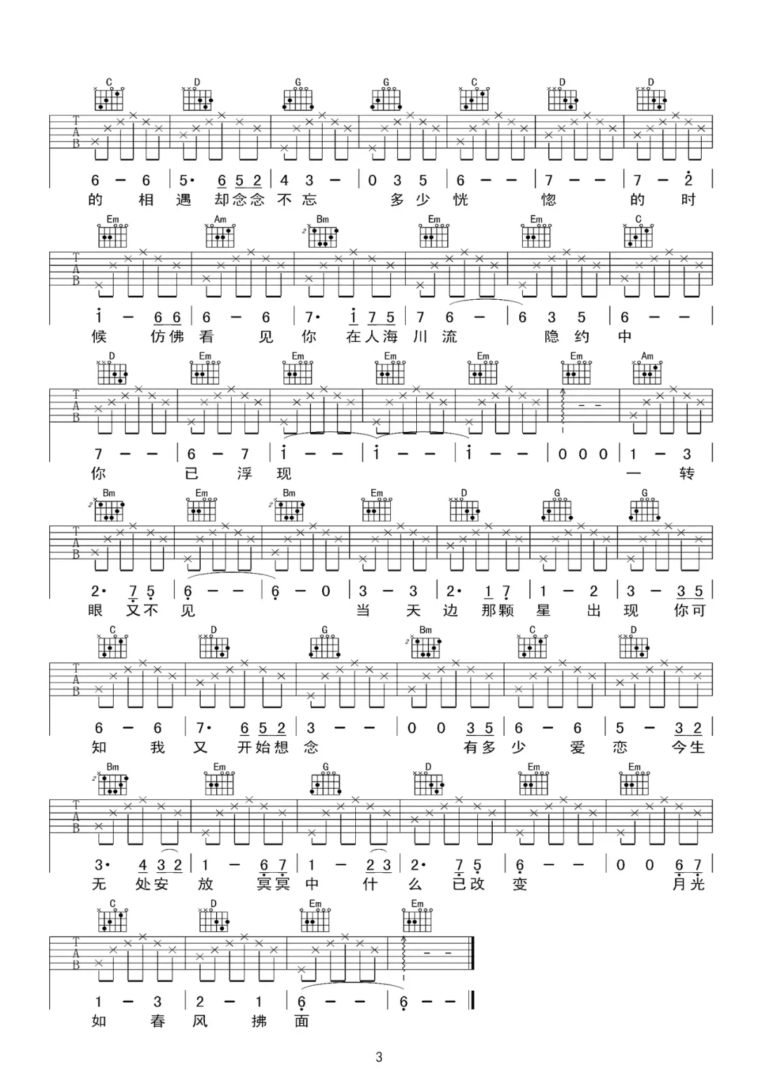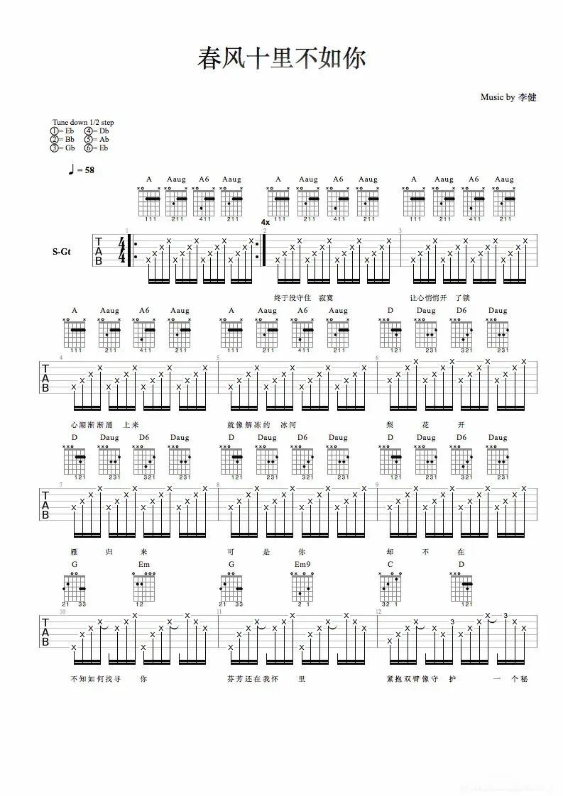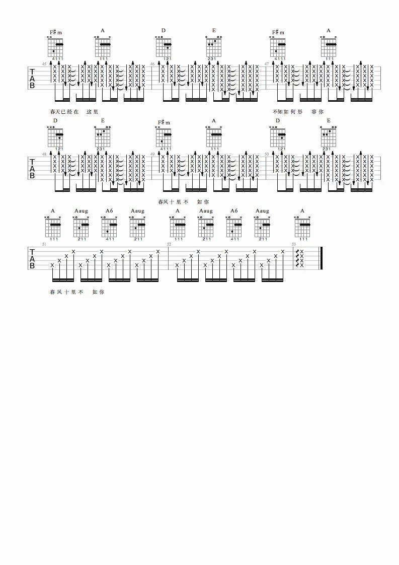 春风十里不如你吉他谱