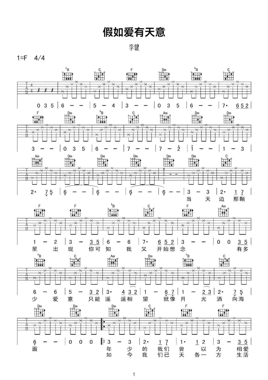 假如爱有天意吉他谱