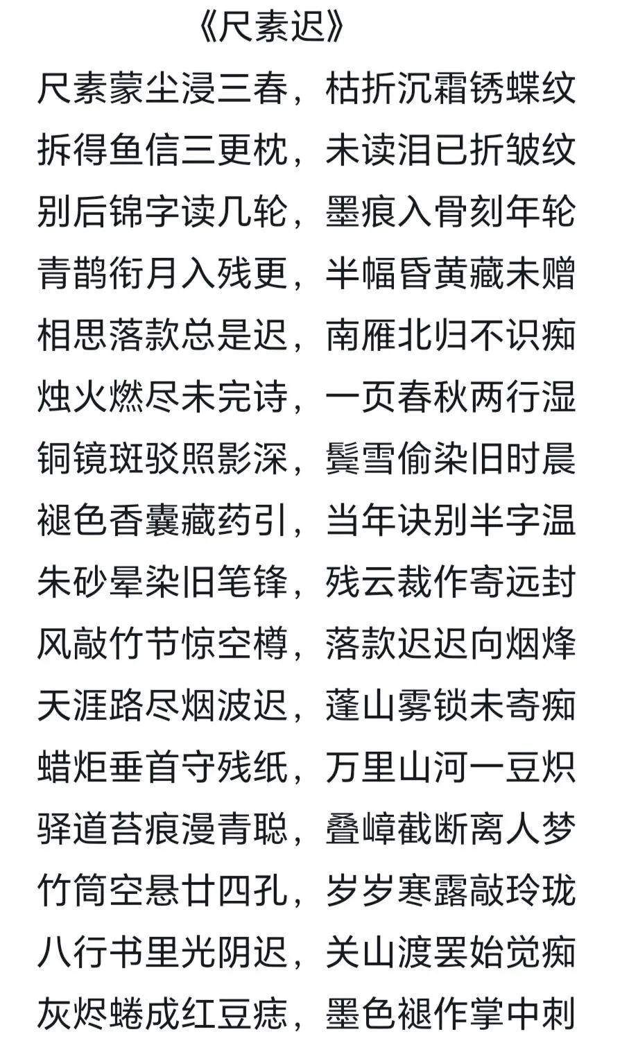 别后锦字读几轮,墨痕入骨刻年轮。