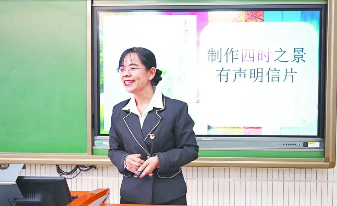 她坚持教学创新,从不满足于已有经验,不断探索适合小学生的学习策略,把朗读教学和情境教学有机融合,形成“情真、意远、理韵”的教学特色,让语文课堂有实效、有温度。她以“真”为教学之基,拉近与学生的距离,努力让每个学生在课堂上都有实实在在的收获。她创设“学习任务群进阶法”“大单元规整法”等多情境课堂,贴近学生的情感体验和生活实际,并引导学生揣摩作者心境、发挥想象、联系生活,学会借助多种媒介表达情感。她的课堂既有知识掌握,又有情感熏陶,还有道理渗透与思维启发,让学生通过丰盈的教学方式汲取知识、学会学习,帮助他们从课本走向生活,走向更广阔的世界。