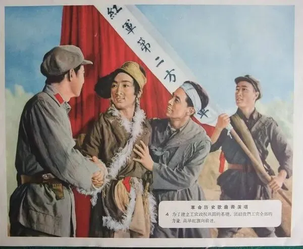 艺术片《革命历史歌曲表演唱》,八一电影制片厂1963年摄制,华纯执导,佟承杰、朱正本、张士燮编剧,中国人民解放军空军政治部文工团集体创作并演出。影片根据毛泽东主席的诗词《井冈山》、《娄山关》谱写的歌曲和江西、延安等老革命根据地的革命歌曲《八月桂花遍地开》、《十送红军》、《松花江上》、《救亡进行曲》、《义勇军进行曲》、《八路军军歌》、《新四军军歌》、《在太行山上》、《游击队歌》、《延安颂》、《南泥湾》、《东方红》等四十几首联缀而成,通过歌舞的形式,反映了秋收起义、红军长征、抗日战争以及南泥湾大生产运动直到抗战胜利的革命历史,表现了中国革命的光辉历程。音乐舞蹈史诗《东方红》就是在《革命历史歌曲表演唱》和《在毛泽东的旗帜下高歌猛进》这两个歌舞的基础上创作排演出来的。