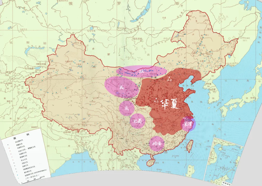 故事里对阵的三方势力,黄帝(仰韶文化庙底沟类型)、炎帝(仰韶文化后期关中-豫西类型)、蚩尤(大汶口文化晚期-龙山文化早期,以及北方红山文化)在三大文化交汇地带涿鹿(涿鹿本地出土的距今5000年左右的史前聚落遗址,同时发现了黄帝部族、炎帝部族、蚩尤九黎部族的典型器物)展开了这场决定华夏文明走向的大战。