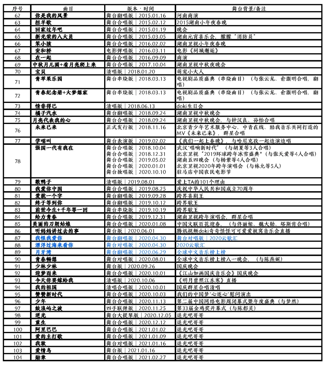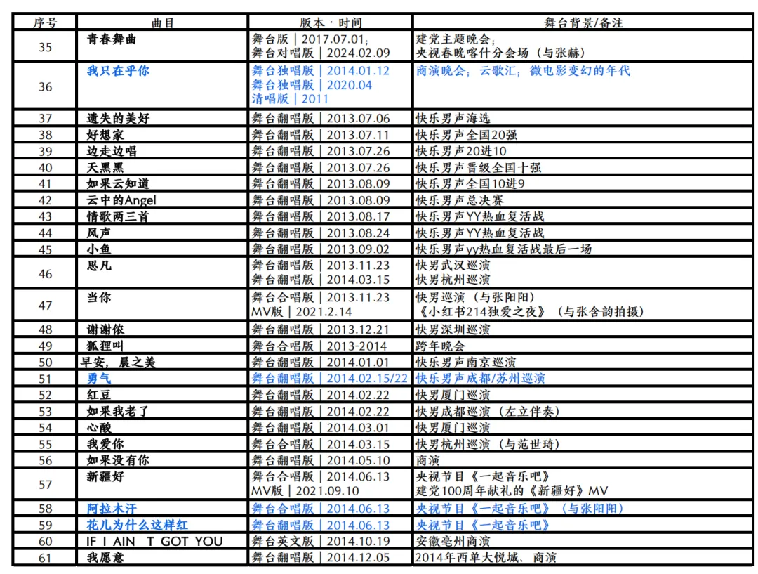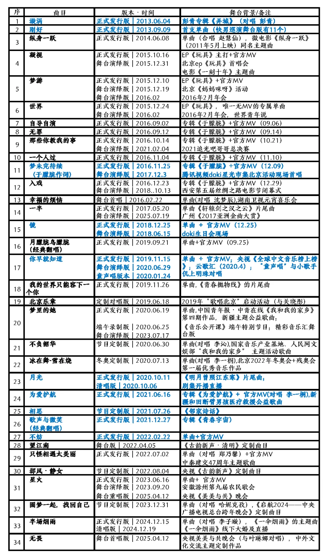 于是,便有了这连日来的反复查阅、逐曲核对,对着每一首曲目、每一个版本、每一次舞台,细细打磨、屡屡修改,歌单改了一版又一版,总想着再周全些、再详尽些,生怕遗漏了哪一段珍贵的旋律,辜负了他的用心演绎,也辜负了大家的满心期待。