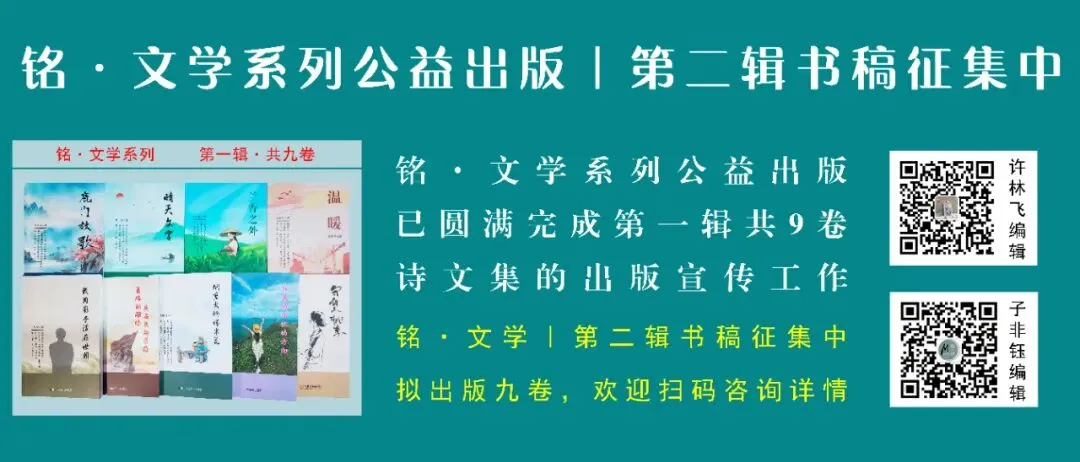 自2020年5月【铭·诗】文化传媒推出“铭·诗集”“铭·文学”系列公益出版项目以来,受到广大作家、诗人好评,并助力诗人、作家顺利出版诗文集,至今已圆满完成“铭·诗集”系列第一至十辑共90卷诗文集的出版发行等工作。秉着公益出版的初心,我们将继续以“铭·文学”系列为作家、诗人、协会等团体组织提供公益出版服务,本系列拟出版十辑,现已完成“铭·文学”系列第一辑共9卷诗文集的出版宣传等工作,“铭·文学”系列第二辑书稿征集中,拟公益出版九卷(可出版诗歌、散文、小说、随笔、评论等文学著作)。