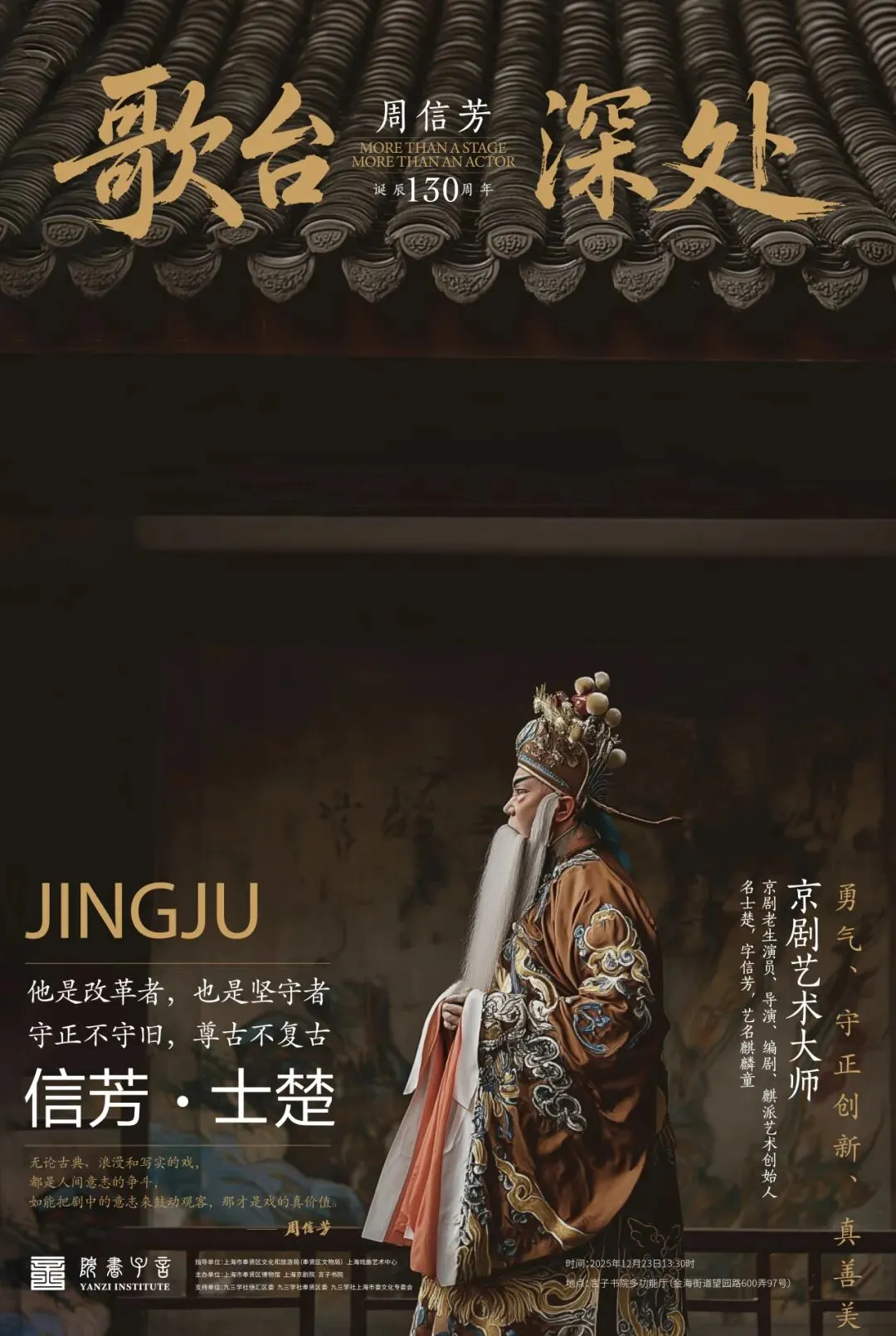周信芳具有开创性的艺术视野与戏剧理念,他呼吁戏曲艺术要始终与时代的脉搏相适应、永葆生命力。本次展览末尾的一段视频由上海视觉艺术学院人工智能应用工作室运用AIGC技术手段制作,使老照片焕发新生,也是当代青年艺术学子与周信芳的一次深情对话。
