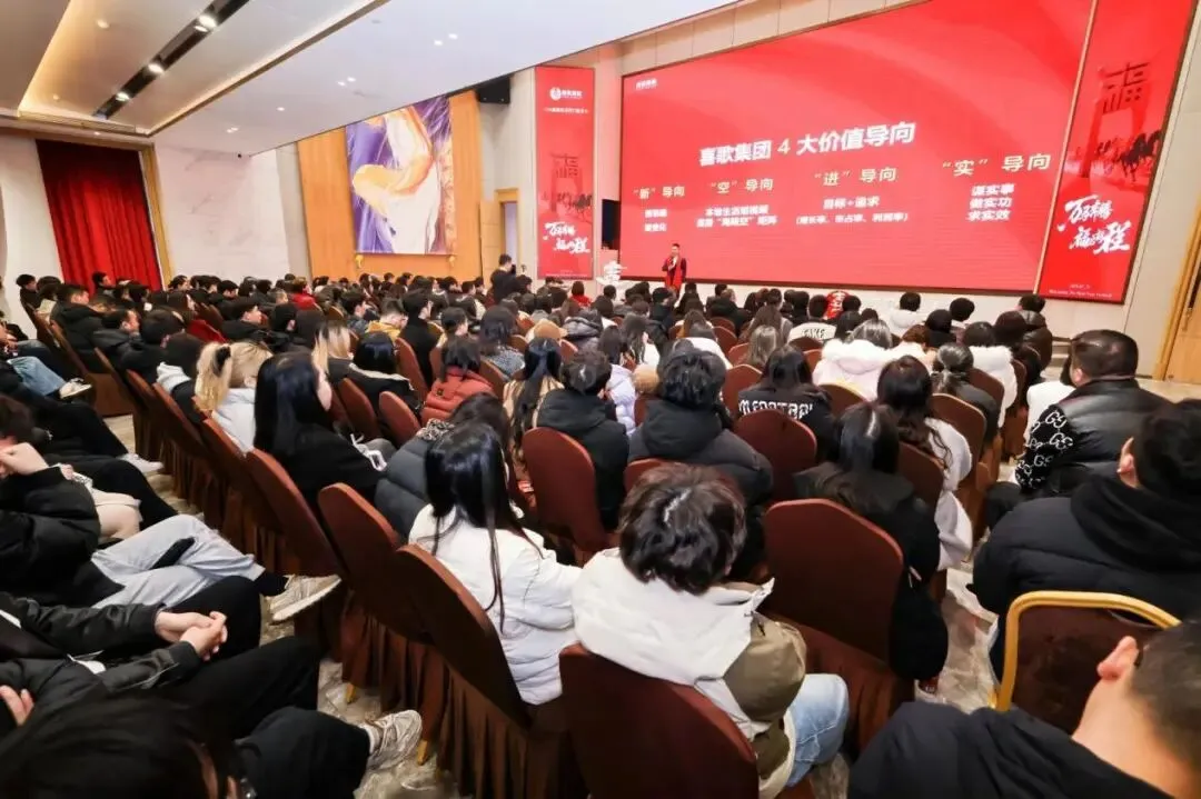 上午9时许,浙江喜歌实业股份有限公司2026年新春工作动员大会在公司会议厅隆重召开。会上,公司高层对2026年的核心工作进行了全面部署与细致解读。