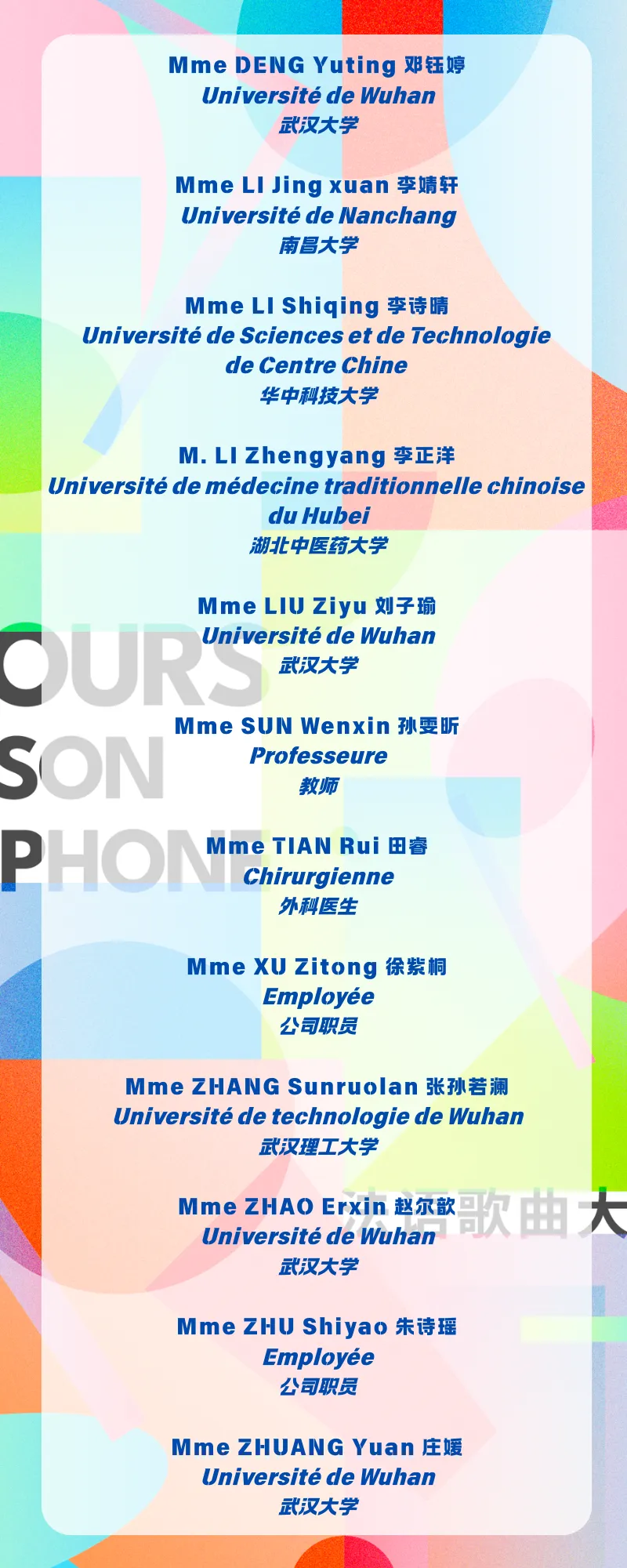 一等奖获得者将代表武汉法语联盟参加3月28日在上海举行的全国总决赛。这场法语人的盛会还将进行线上直播,精彩不容错过!
