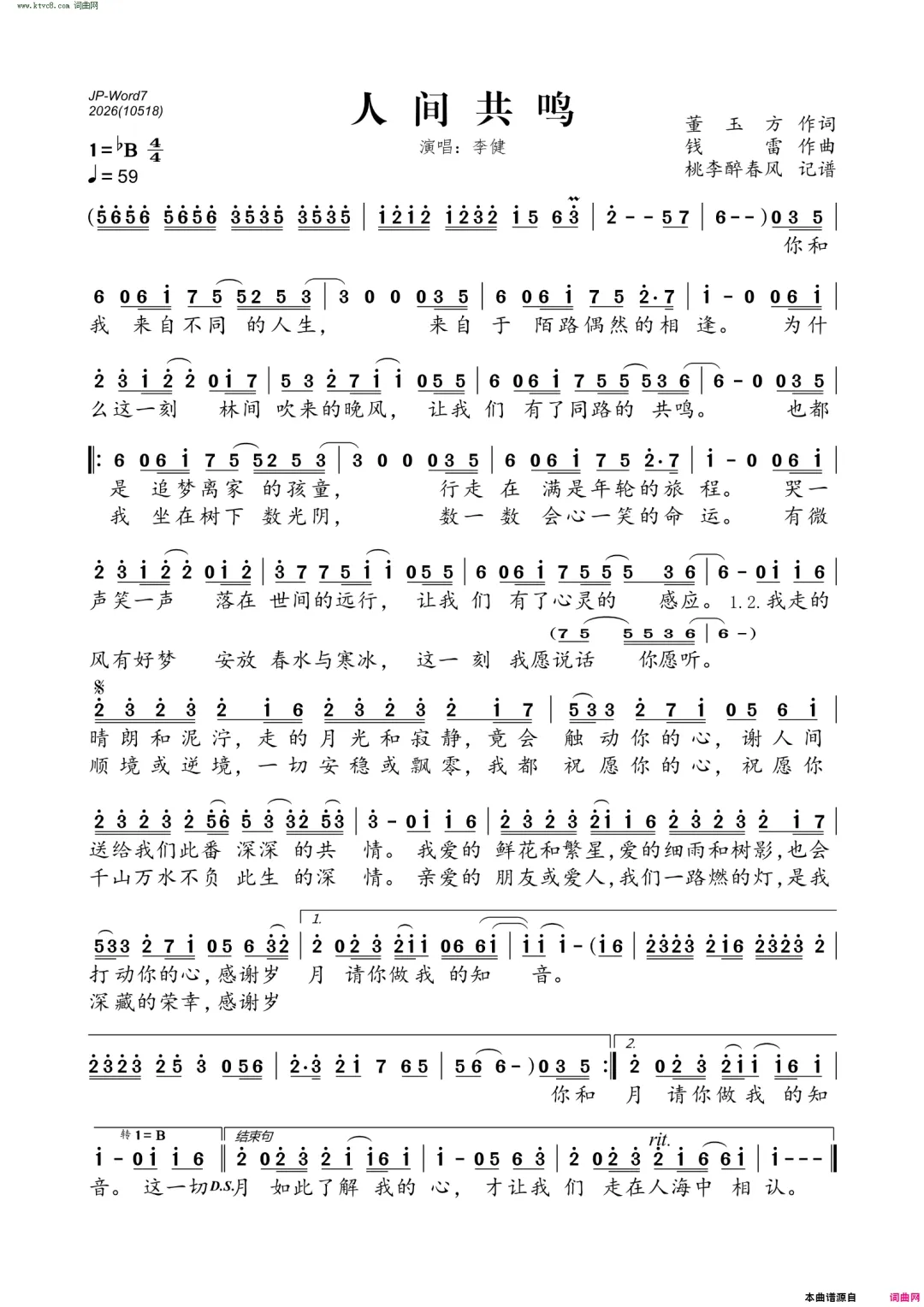 人间共鸣 曲谱