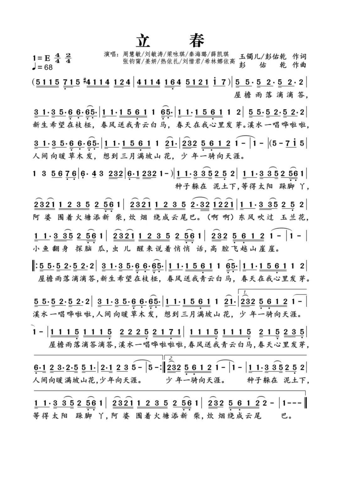 立春 曲谱