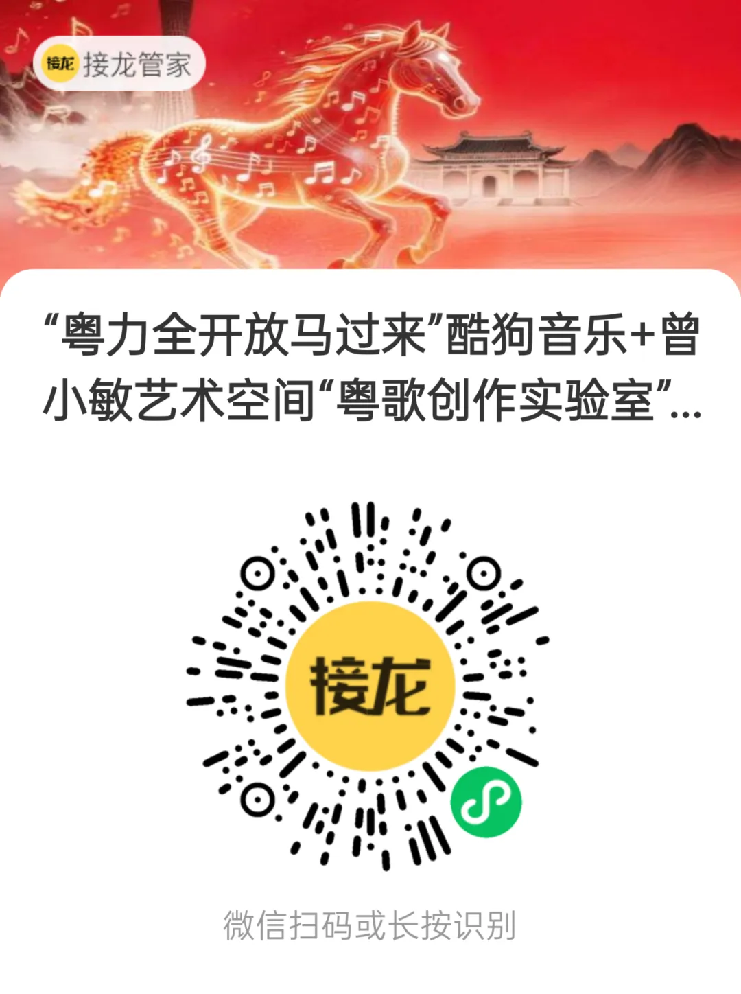 在活动中,“粤歌创作实验室”将正式启动。酷狗音乐的现代科技平台,与曾小敏艺术空间的传统人文底蕴实力交汇,共同探索粤歌的无限边界。