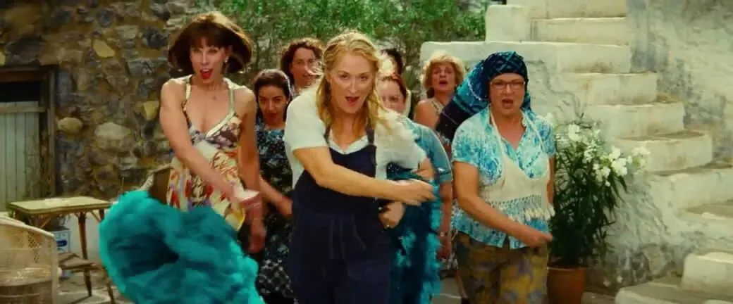 毕竟《妈妈咪呀》前身是音乐剧,用一段段歌舞串联、推动故事发展,再合适不过。